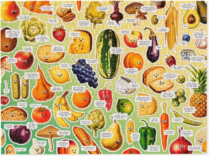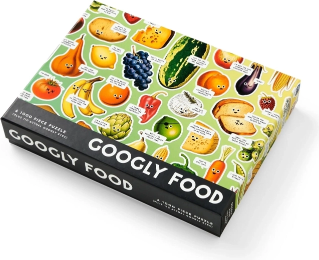 Een kleurrijke collage van vrolijke etenswaren met ‘googly’ ogen brengt speelse details en een prettige uitdaging voor zowel beginners als ervaren puzzelaars.