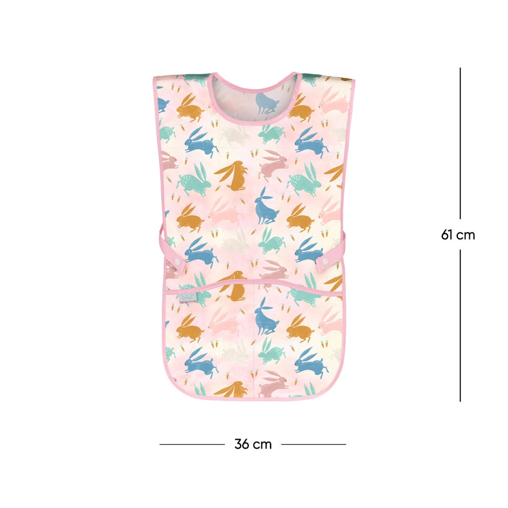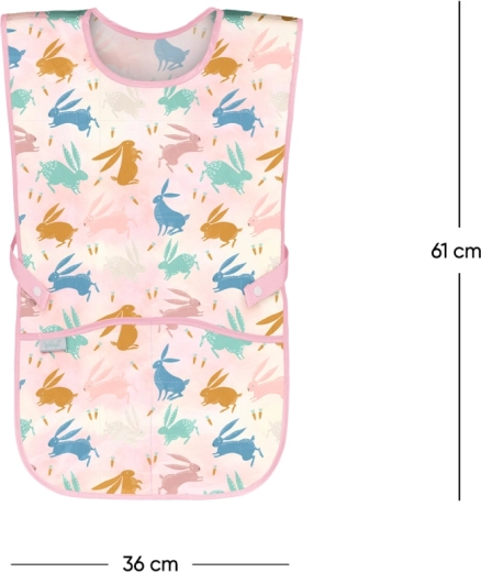 Het BAAGL Bunny kinderschort is ontworpen om kleding betrouwbaar te beschermen tegen verf, lijm en eten. Dankzij het gemakkelijk afwasbare materiaal veeg je het na gebruik eenvoudig schoon en is het klaar voor een nieuw avontuur. Het schattige motief met konijntjes en worteltjes maakt kinderen enthousiast en stimuleert hun creativiteit.