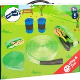 Deze set bevat vilten beschermstrips om de schors van bomen te beschermen en een spansysteem om de gewenste spanning in te stellen. Slacklining wordt een favoriete bezigheid voor zowel kinderen als volwassenen. Probeer dit leuke buitenspel dat een must is voor elke tuin.