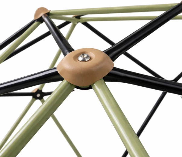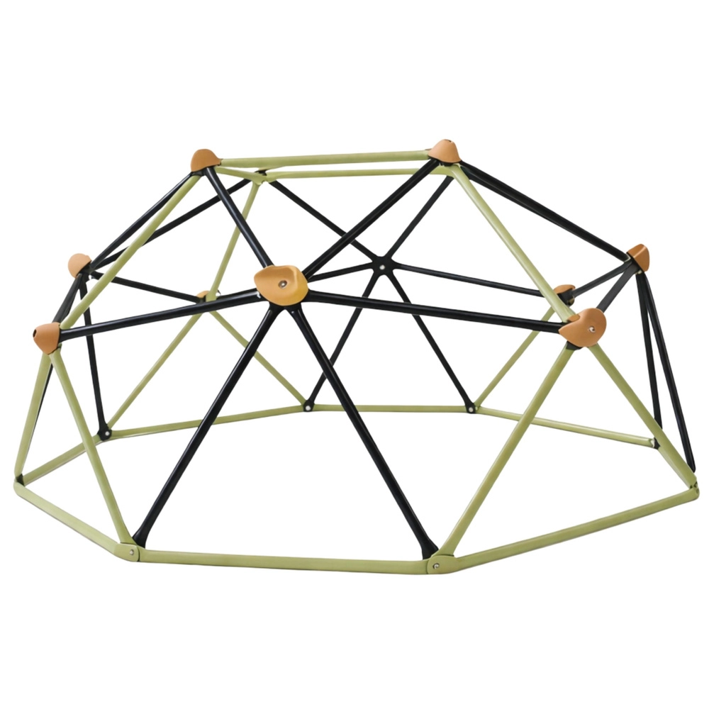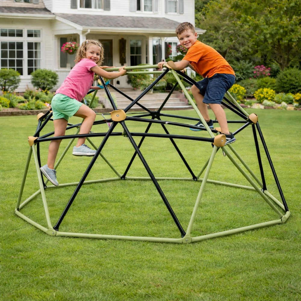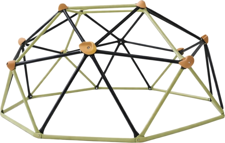 De klimkoepel voor in de tuin biedt een stabiele, duurzame en veilige constructie voor actieve buitenspelen. De geodetische structuur van gepoedercoat staal met antislipgrepen ondersteunt de ontwikkeling van kracht, coördinatie en balans. Je plaatst hem eenvoudig op gras, zand of een ander vlak oppervlak, zonder verankering.