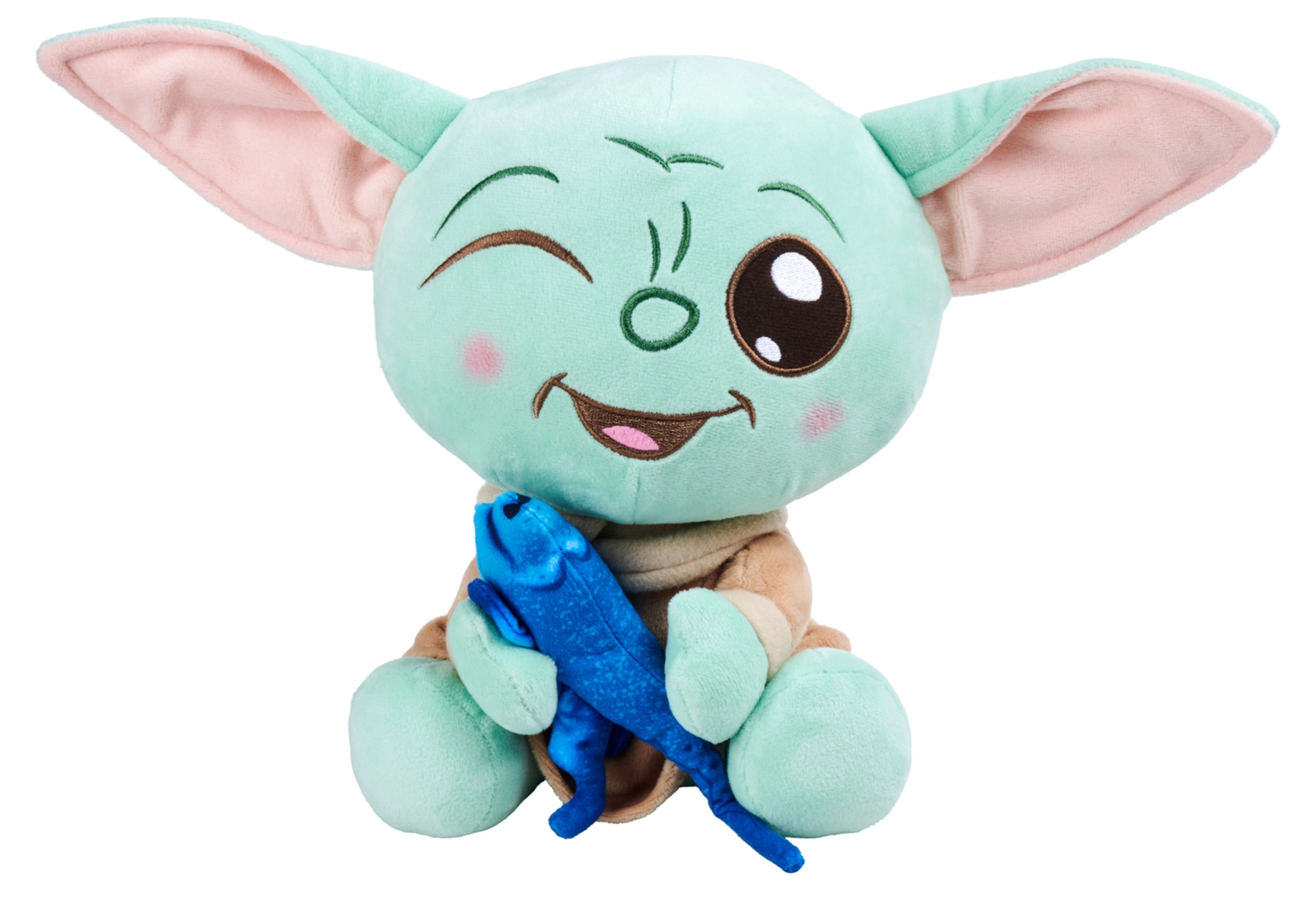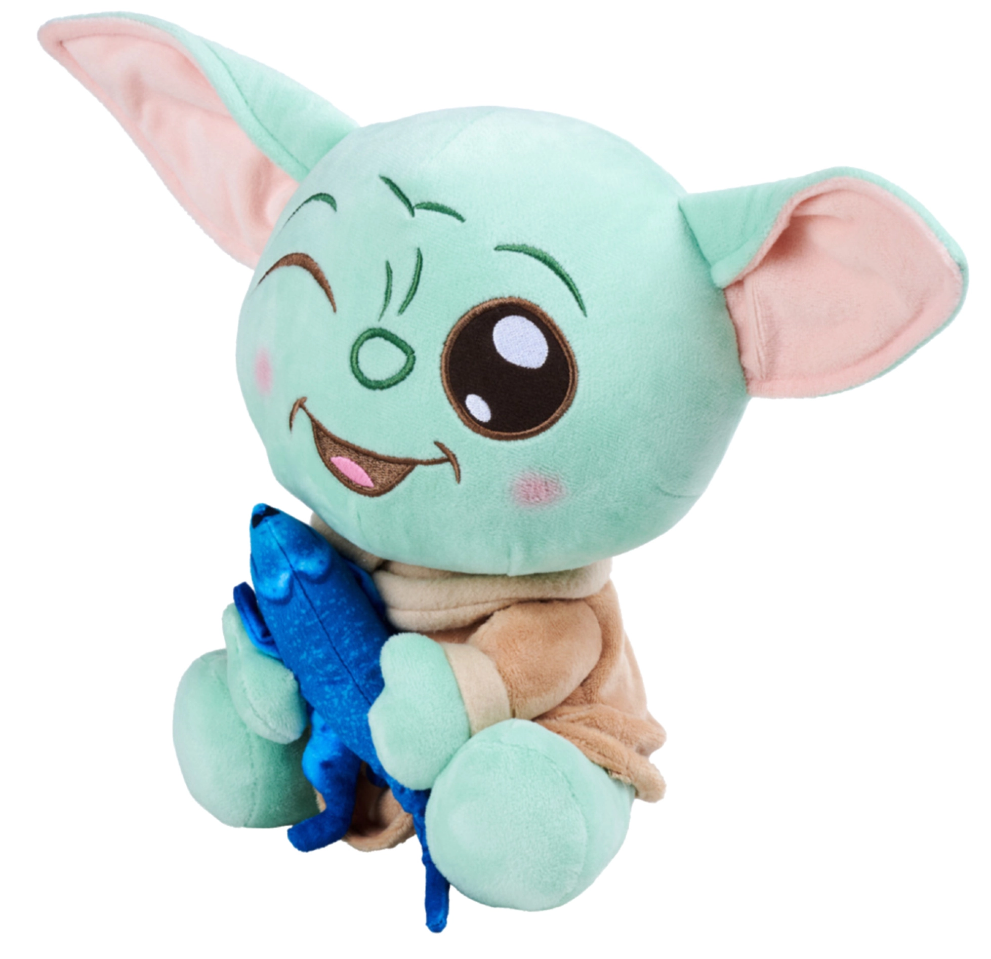 Breng de magie van het sterrenstelsel in huis met het iconische personage Grogu (Baby Yoda). Deze kwalitatieve pluchen figuur valt op door het zachte, donzige materiaal en de zorgvuldig geborduurde gelaatstrekken. De leuke toevoeging van het blauwe visje verwijst naar onvergetelijke scènes uit de serie en geeft de knuffel een uniek karakter.