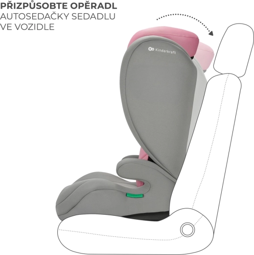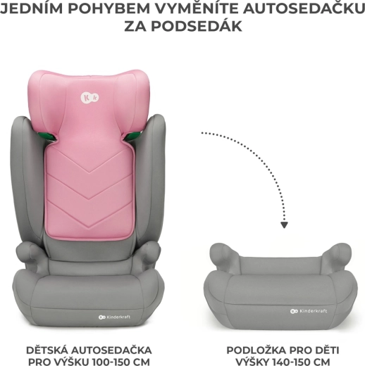De hoofdsteun verstel je met één hand in 10 niveaus. Voor oudere kinderen (140–150 cm) kan de rugleuning worden verwijderd en kan een comfortabele, goedgekeurde zitverhoger worden gebruikt.
