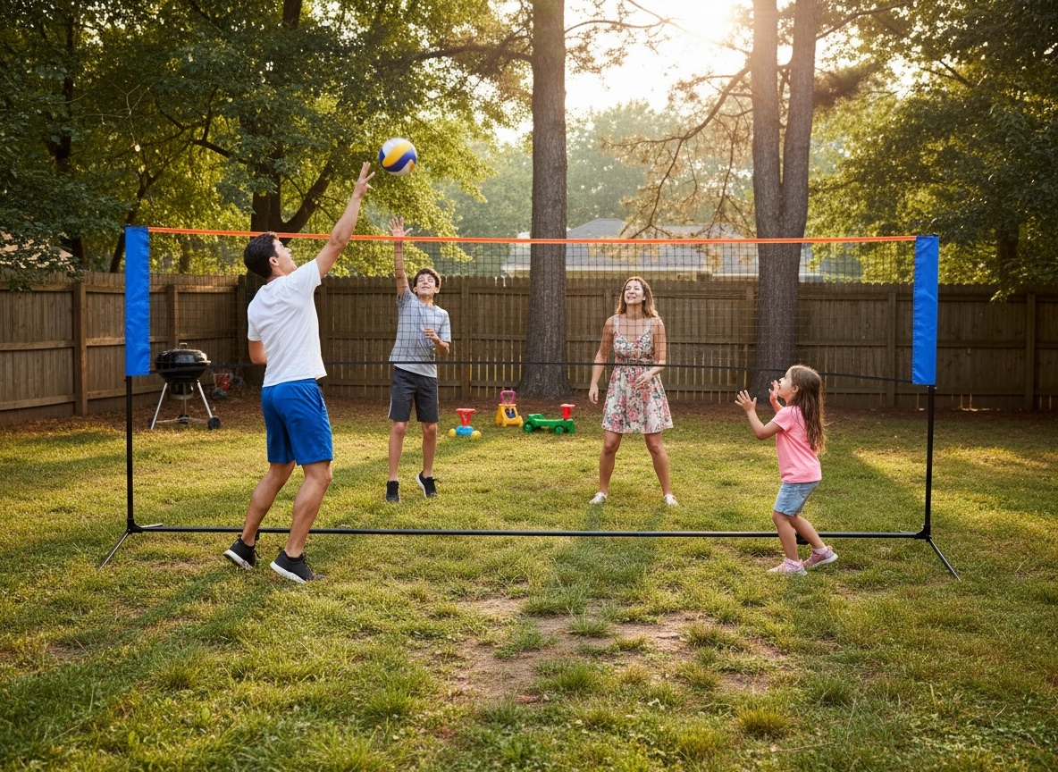 Universeel sportnet voor badminton, volleybal en tennis waarmee je overal een speelveld creëert – in de tuin, op het strand of op school. Dankzij de verstelbare hoogte van 95 / 155 / 225 cm, de stabiele metalen constructie en de praktische draagtas zet je het snel op en breek je het net zo vlot weer af. Netafmeting 305 × 103 cm is ideaal voor familieplezier en training.