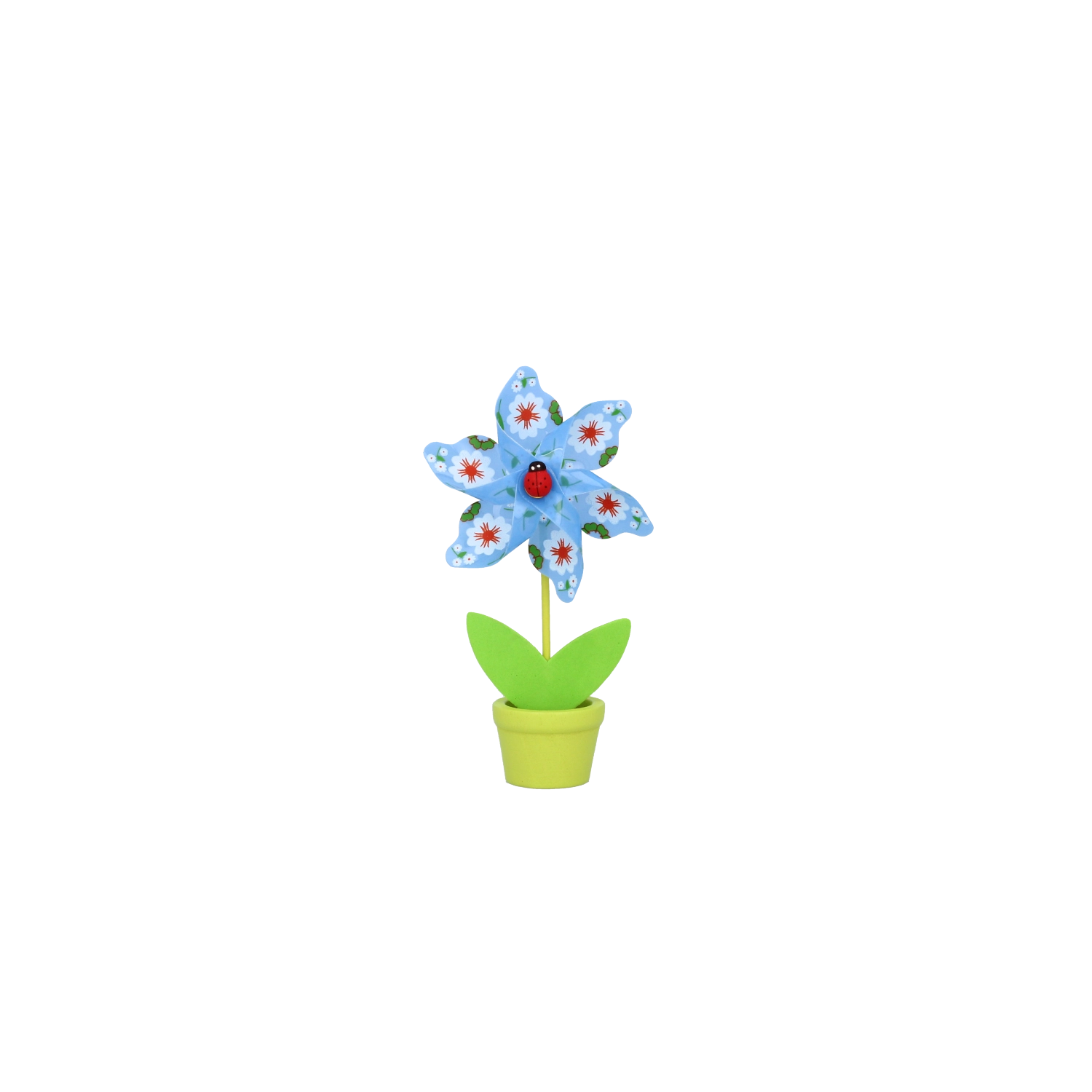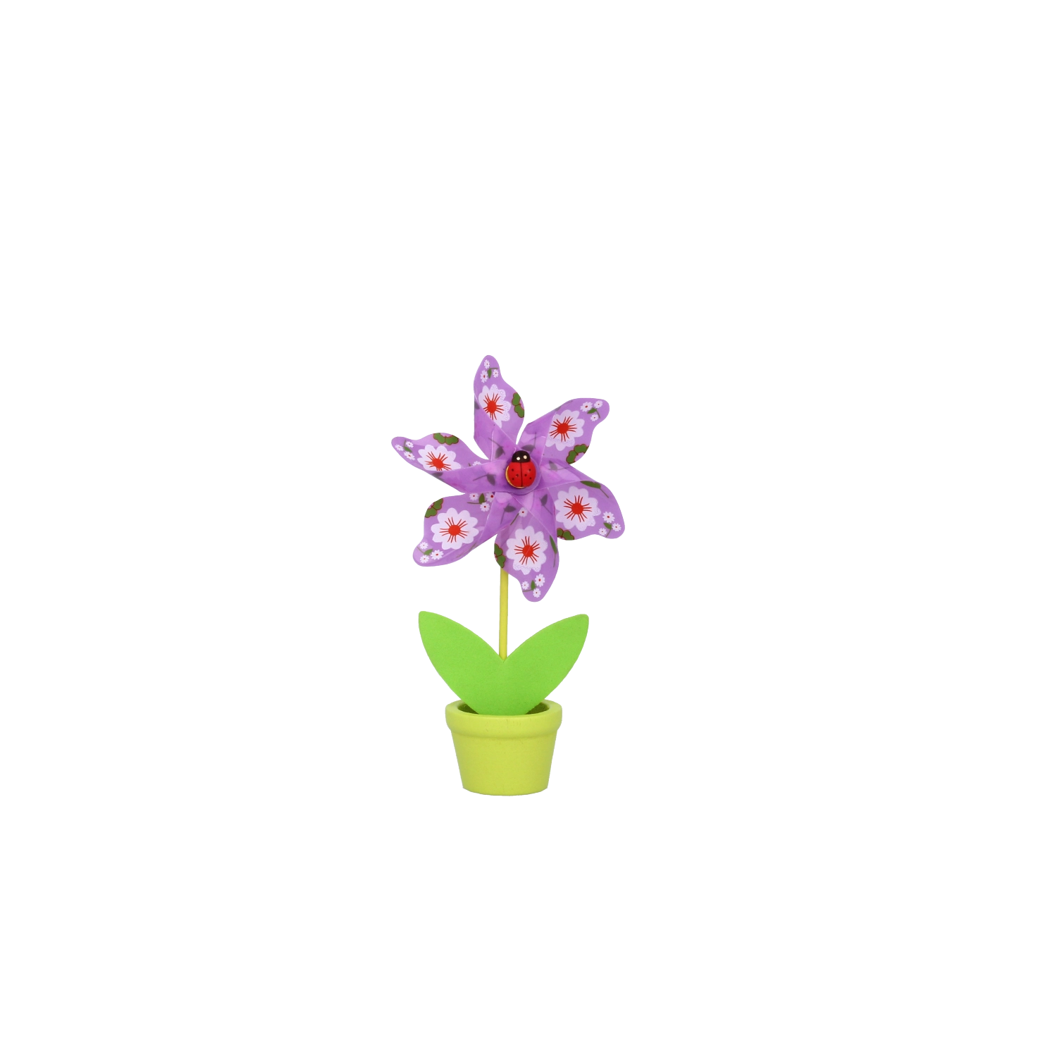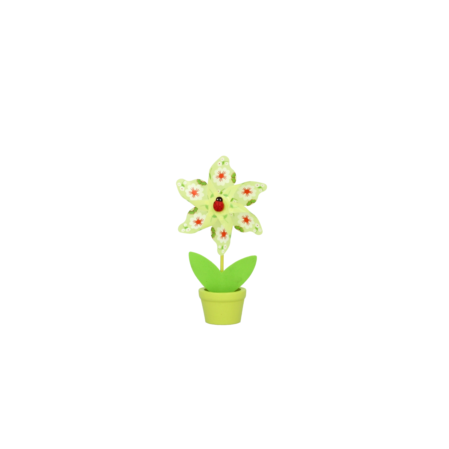 Breng kleur in het interieur of de kindercorner met een kleurrijk windmolentje met lieveheersbeestje in een mini bloempot. Licht en stabiel, het draait al bij een zacht briesje en brengt speelsheid en kleur in de ruimte. Dankzij het compacte formaat is het perfect voor bureau, plank of vensterbank.
