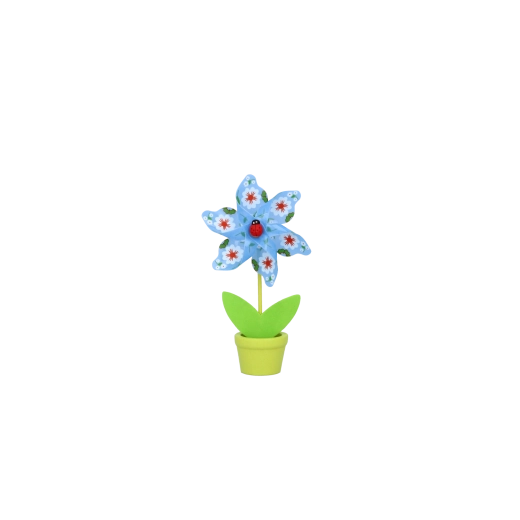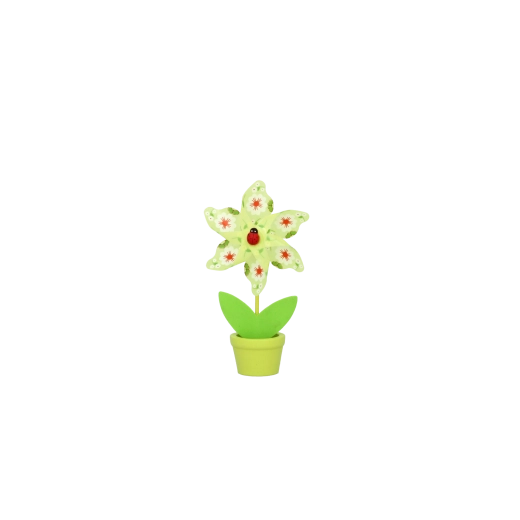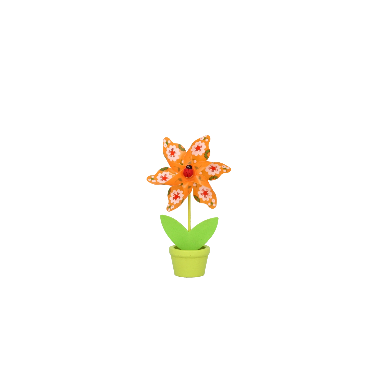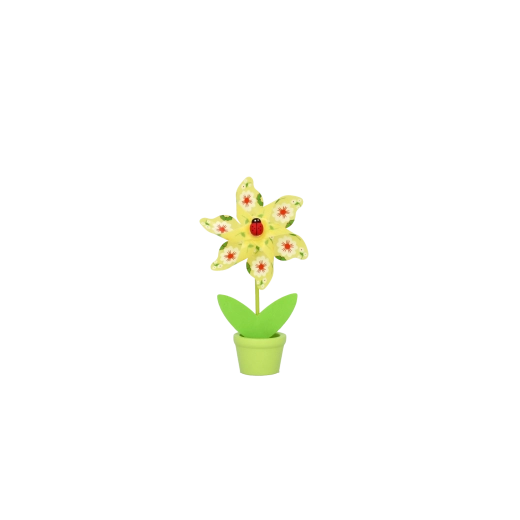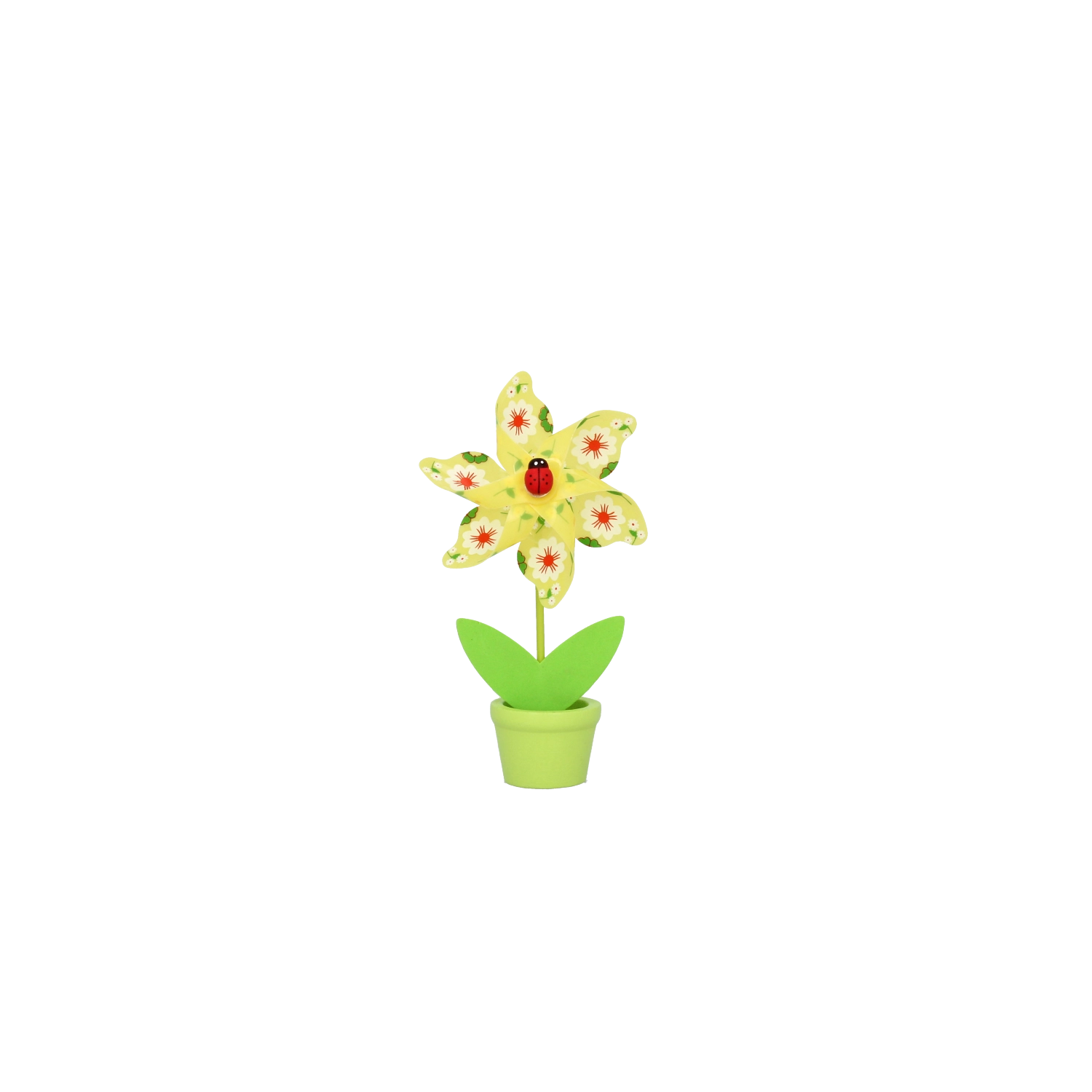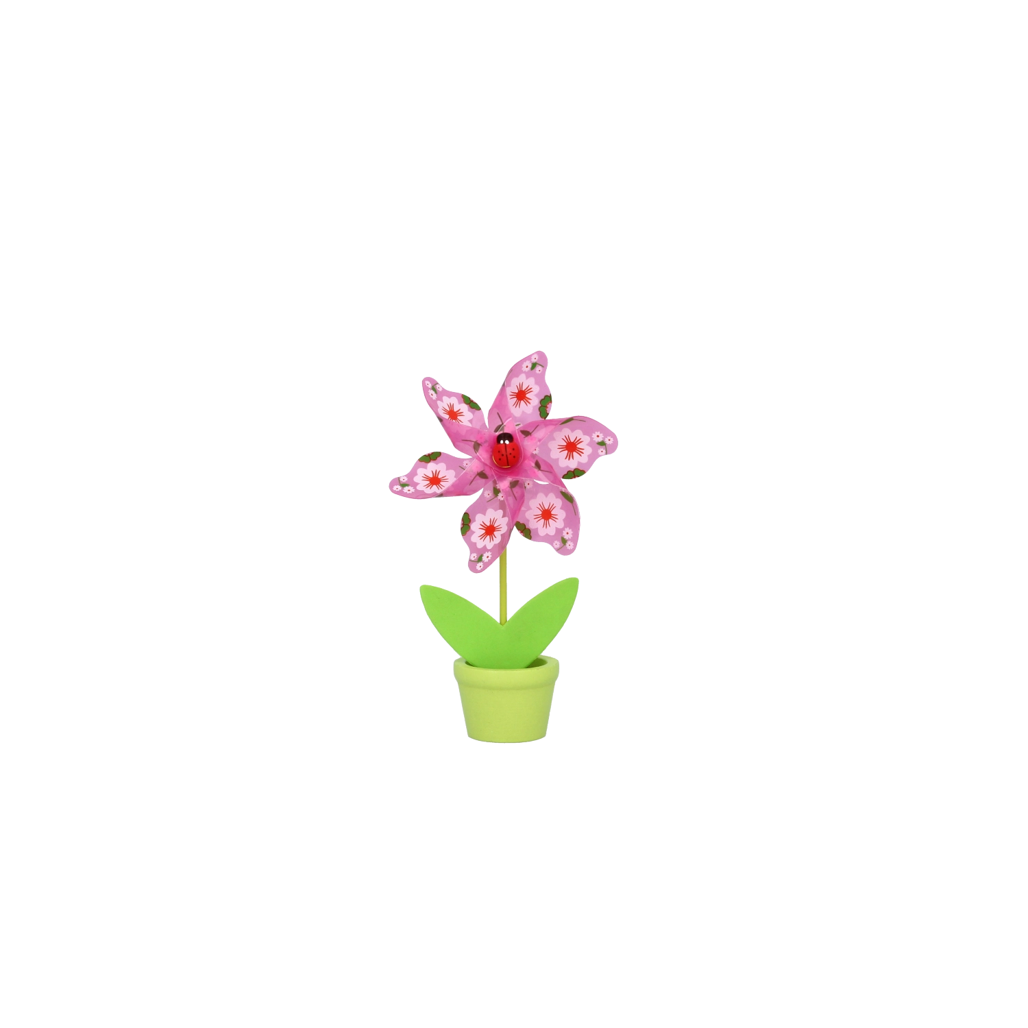 Breng kleur in het interieur of de kindercorner met een kleurrijk windmolentje met lieveheersbeestje in een mini bloempot. Licht en stabiel, het draait al bij een zacht briesje en brengt speelsheid en kleur in de ruimte. Dankzij het compacte formaat is het perfect voor bureau, plank of vensterbank.