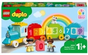 De populaire educatieve trein van LEGO DUPLO helpt kinderen de wereld van cijfers spelenderwijs te ontdekken. Kinderen kunnen de cijferstenen stapelen, verwijderen, ordenen en sorteren op de wagonnetjes en zo hun oog-handcoördinatie en logisch denken ontwikkelen.