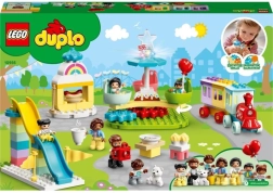 Betreed de wereld van eindeloos plezier en ontdek verschillende attracties die het LEGO DUPLO Pretpark te bieden heeft. Van glijbanen tot reuzenrad en treintje, iedereen vindt hier zijn eigen hoekje voor spel en plezier.