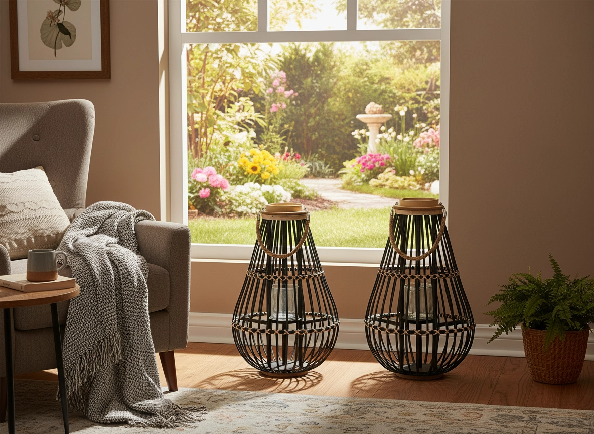 Grote zwarte lantaarn van hoogwaardig hout met glazen inzet, ideaal voor romantische avonden, feestelijke gelegenheden en het dagelijks gezelliger maken van je ruimte. Door het royale formaat komt hij perfect tot zijn recht bij de entree, in de woonkamer en op het terras, terwijl de open constructie het kaarslicht prachtig verspreidt.