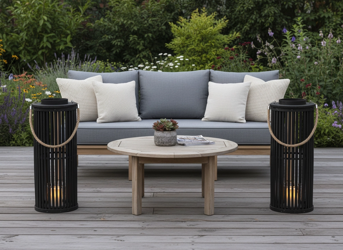 De grote zwarte lantaarn is een opvallend accessoire voor terras, tuin en woonkamer. Dankzij de glazen inzet is de kaars beschermd en wordt het licht aangenaam tussen de lamellen verspreid. Het design komt tot zijn recht in moderne, rustieke en boho-interieurs.