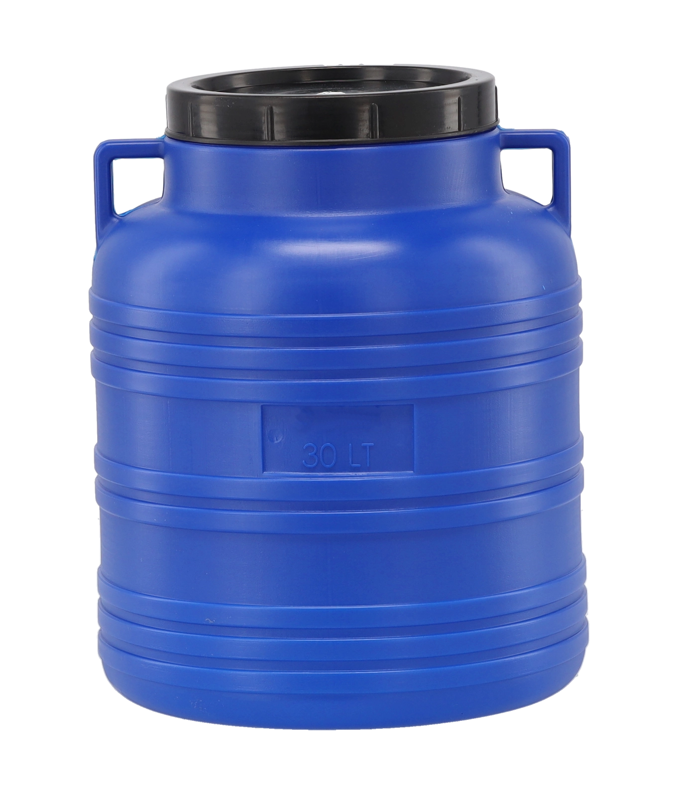 Geïntegreerde zijhandgrepen zorgen voor comfortabele hantering, ook bij volle inhoud. Het vat is geschikt voor fermenteren van groenten, opslag van most en sappen, maar ook voor het transport van vloeistoffen of droge grondstoffen.