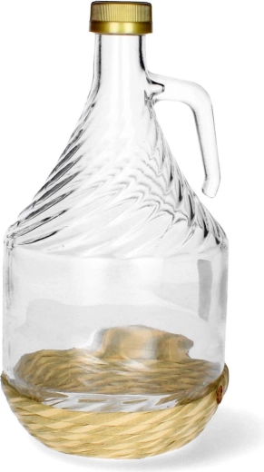 De glazen fles Dama met een inhoud van 2 l is een betrouwbare hulp bij het bewaren van huisgemaakte wijnen, likeuren, bieren en sappen. Het decoratieve vlechtwerk geeft een aantrekkelijke uitstraling, verhoogt de bescherming van het glas en vergemakkelijkt de handling. Het ergonomische handvat zorgt voor comfortabel dragen en schenken zonder morsen, terwijl de stevige schroefdop de inhoud beschermt tegen lucht en de volle smaak en geur behoudt.