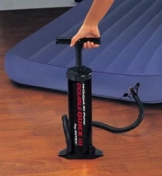 De Intex Double Quick III is een praktische handpomp, ontworpen voor snel en comfortabel oppompen. Het dubbelwerkende mechanisme blaast lucht bij de opwaartse én neerwaartse slag, wat de oppomptijd aanzienlijk verkort en kracht bespaart. De stevige constructie met stabiele voetsteun houdt de pomp op zijn plaats, zelfs bij intensief gebruik.