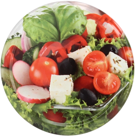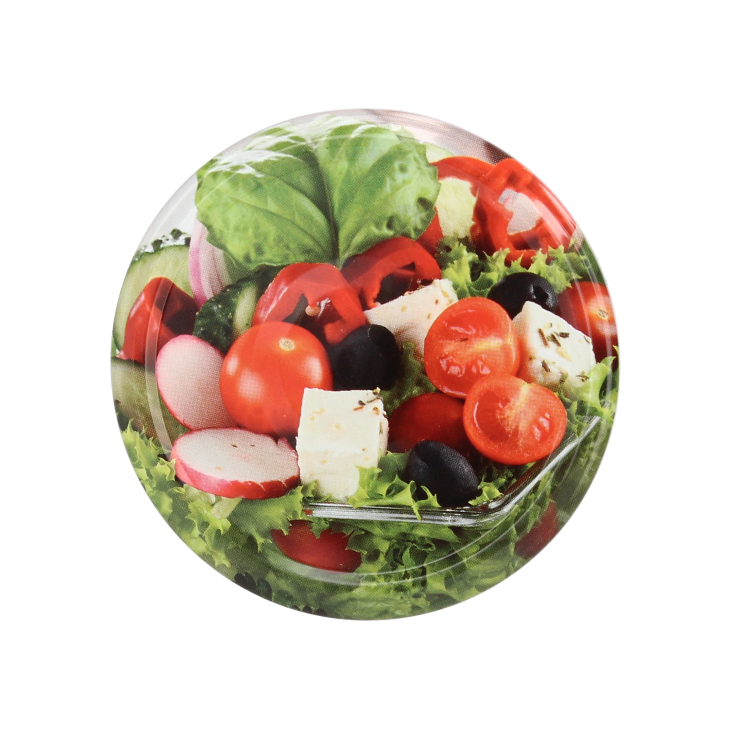 De esthetische kleurrijke print met groentemotief verfraait niet alleen je potten, maar vergemakkelijkt ook het overzicht en de identificatie van de inhoud in de voorraadkast. De deksels zijn ontworpen voor hergebruik na grondige reiniging en voldoen aan de eisen voor voedselcontact.