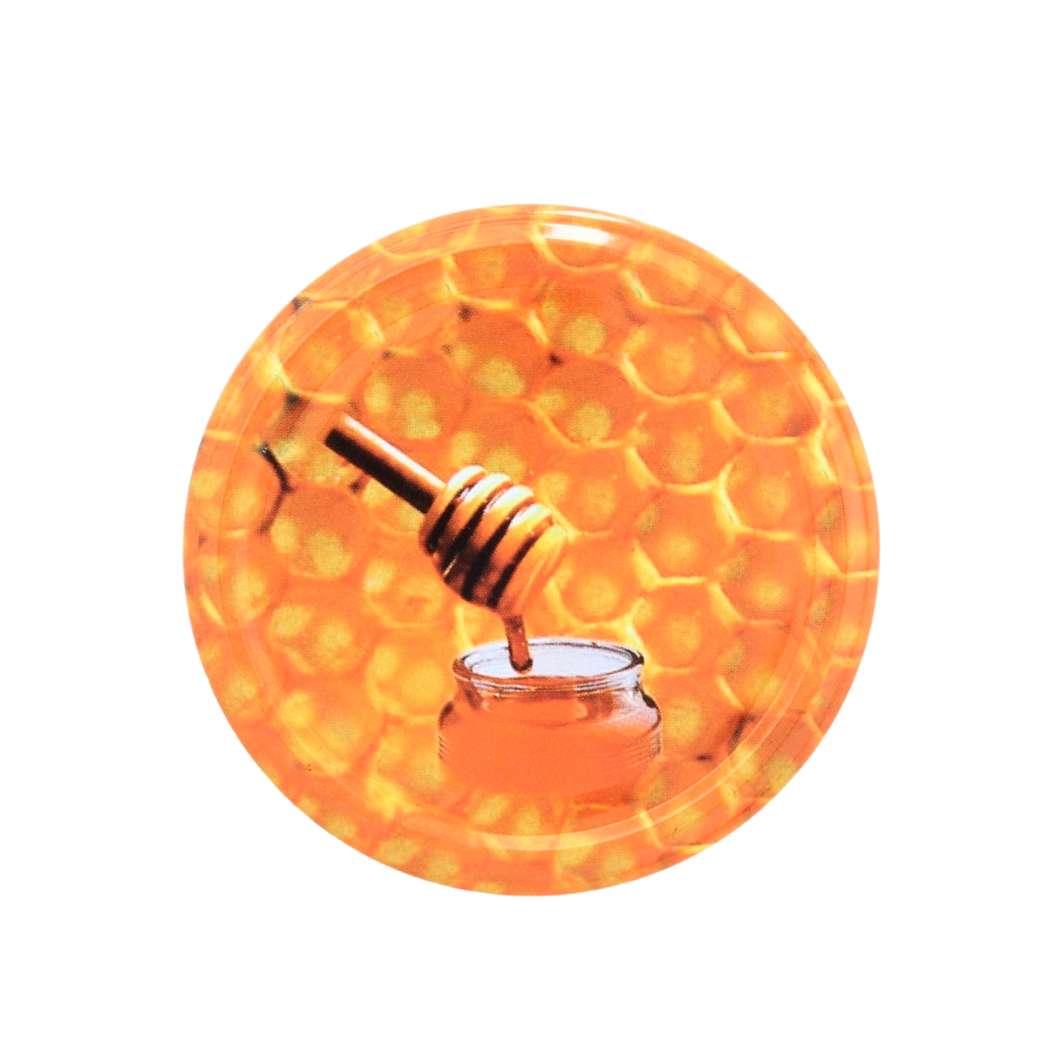 Praktische set van 10 deksels met een diameter van 82 mm en een decoratief honingmotief, ideaal voor thuis inmaken en bewaren, vooral voor honing. De deksels van verzinkt staal met een interne siliconenlaag zorgen voor uitstekende afdichting, betrouwbare bescherming van de inhoud en eenvoudig gebruik dankzij de click-sluiting. Het aantrekkelijke design geeft uw potten een esthetische uitstraling voor eigen gebruik of als stijlvol cadeau.