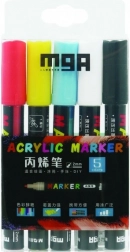 De set bevat 5 verschillende kleuren die ideaal zijn voor diverse kunsttechnieken. U kunt vertrouwen op sneldrogende eigenschappen en waterbestendigheid na drogen. Dit alles in een praktische doos van 9 x 18 x 2 cm.