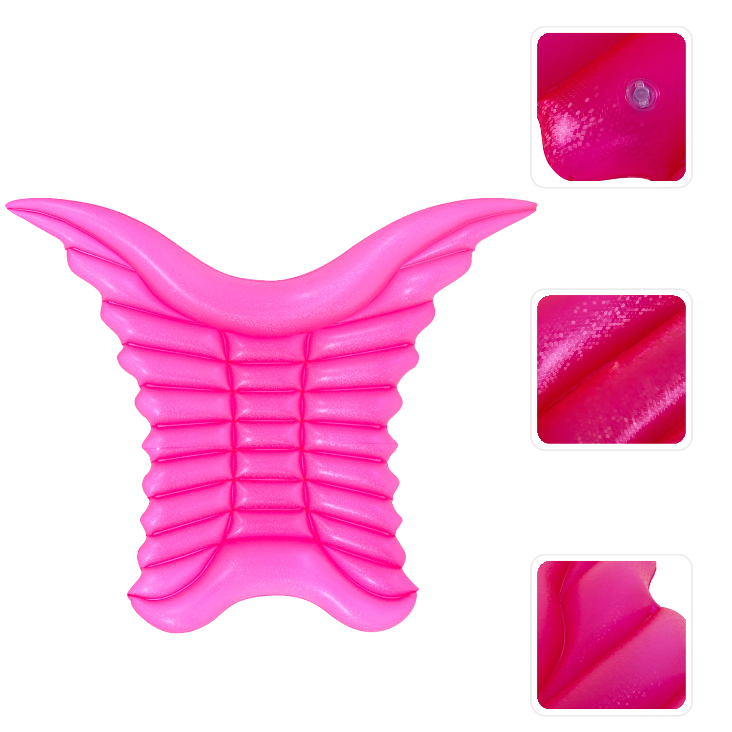 Het opblaasbare luchtbed Engelenvleugels maakt van elke zwemsessie een leuke en fotogenieke ervaring. Dankzij de royale afmetingen rust je comfortabel uit bij het water of op het strand, terwijl drie aparte kamers zorgen voor extra stabiliteit en veiligheid. Het oppervlak van duurzaam vinyl is bestand tegen dagelijks gebruik en is eenvoudig schoon te maken.