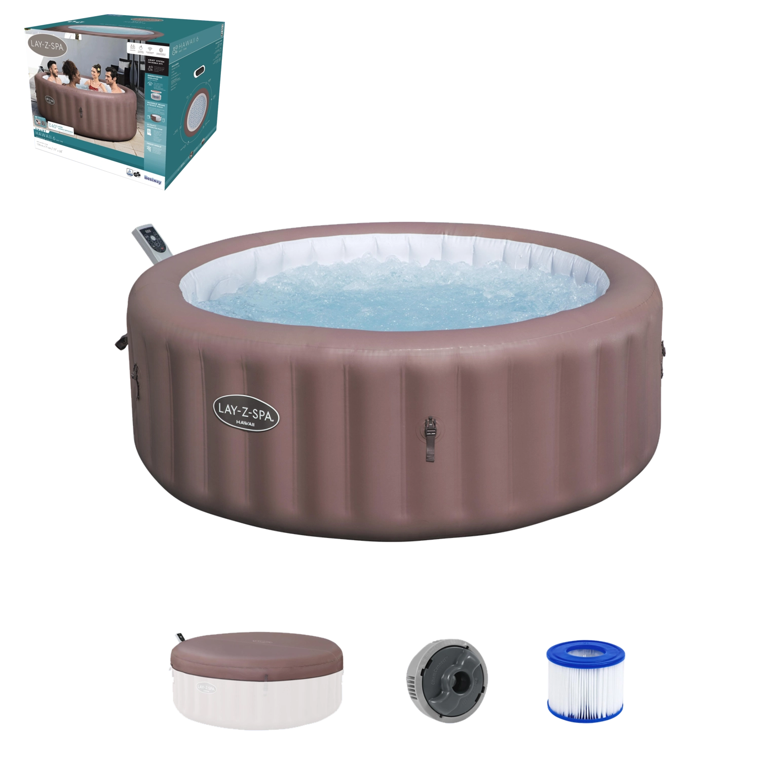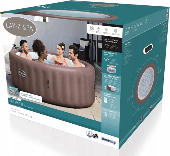 De opblaasbare jacuzzi LAY-Z-SPA Hawaii AirJet biedt comfort en ontspanning het hele jaar door. Het AirJet-systeem met 140 stralen omringt het lichaam met een stroom warme bubbels die helpen spieren te ontspannen en stress te verlichten. Energiezuinige isolatie en een doordachte constructie zorgen voor snel opwarmen en het vasthouden van temperaturen tot 40 °C.