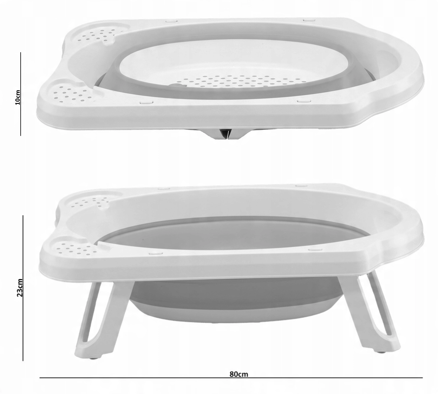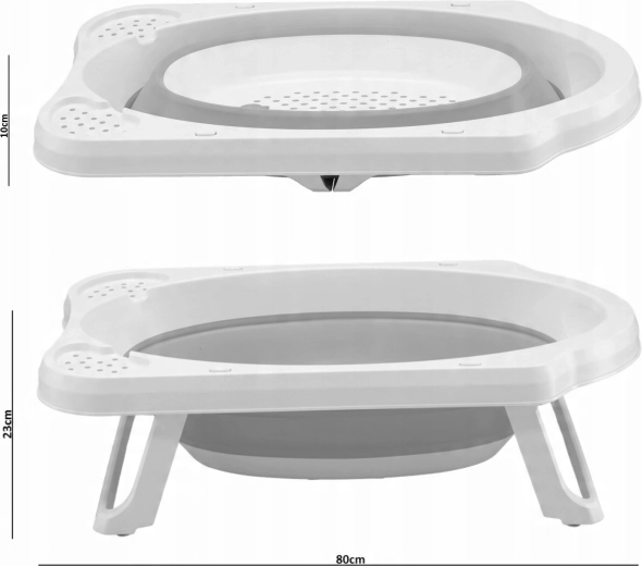 Dankzij de royale afmetingen van 80 × 45,5 × 24 cm is hij geschikt vanaf pasgeborenen tot en met peuters. Het materiaal is eenvoudig te reinigen, de badkuip is in enkele seconden klaar voor gebruik en na het badderen zo weer ingeklapt.