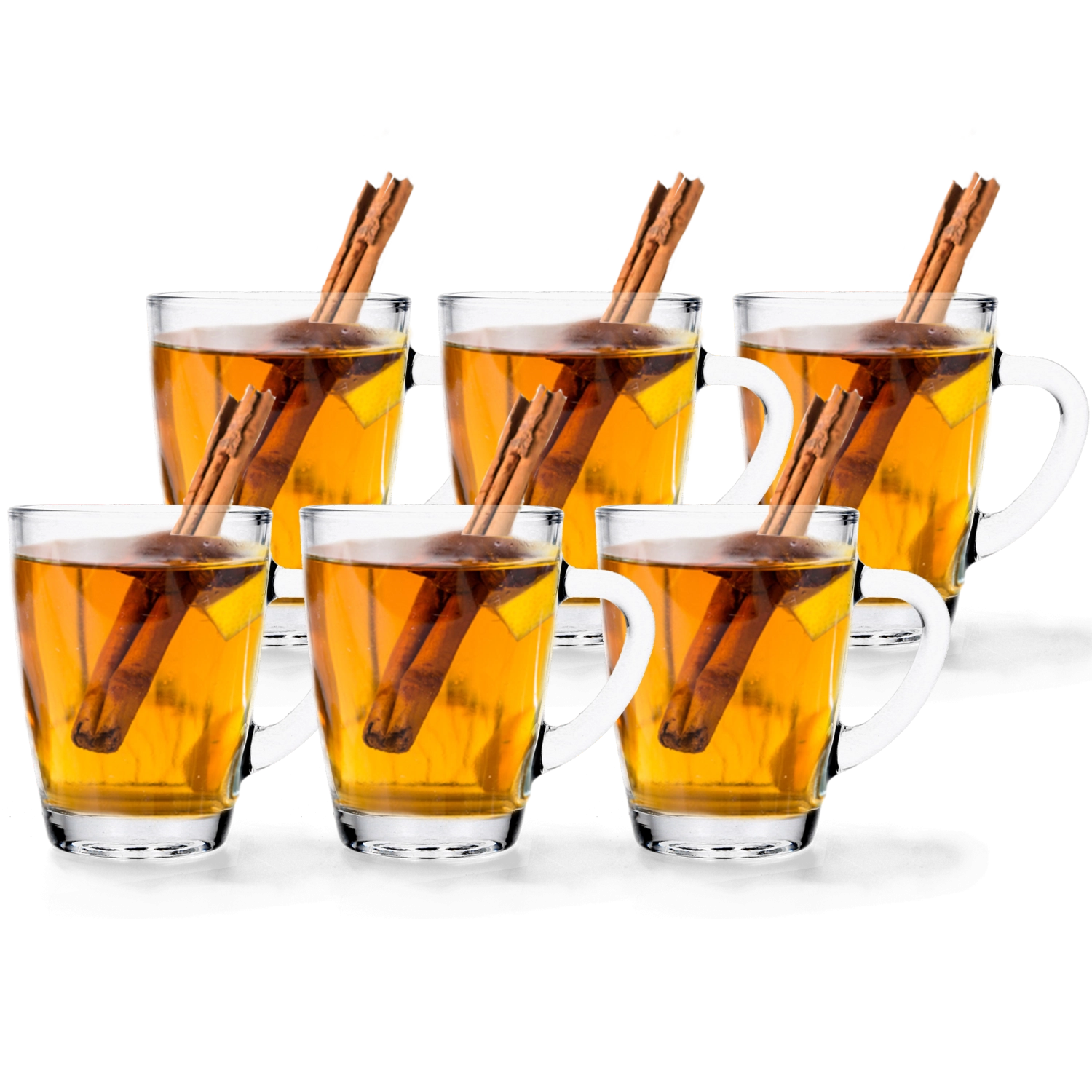De set van zes glazen mokken LAV Vega biedt een uitgebalanceerde combinatie van elegantie en functionaliteit. Het heldere glas benadrukt de kleur van de drank, terwijl het robuuste oor zorgt voor een comfortabele en veilige grip. De inhoud van 250 ml is perfect voor espresso lungo, cappuccino, thee of warme kruidendranken.