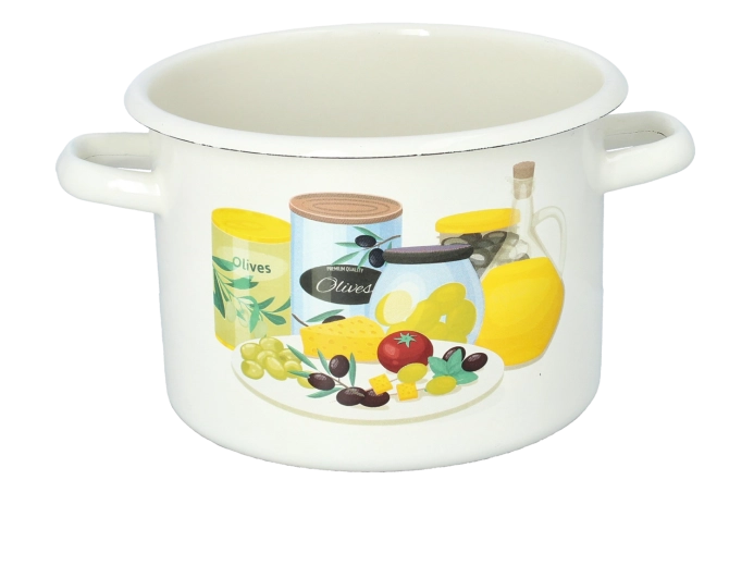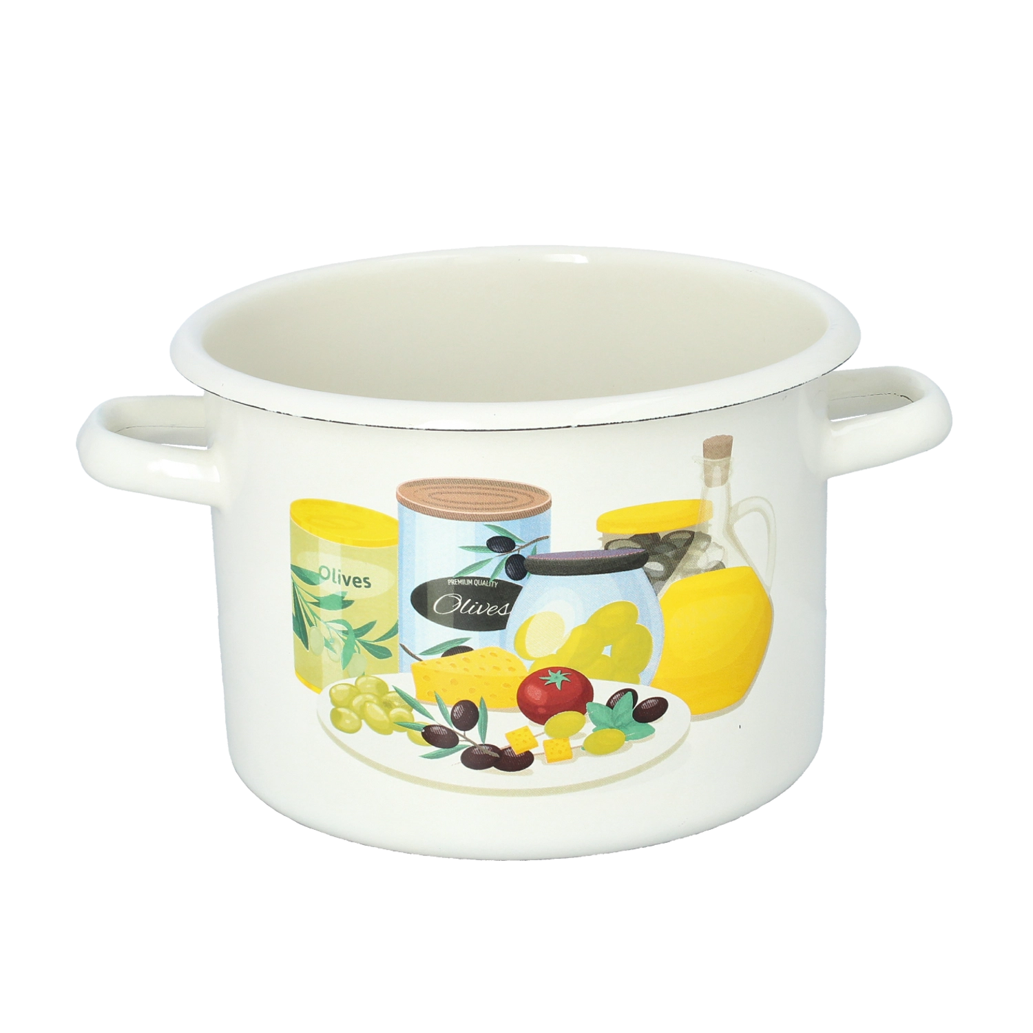 Kies voor tijdloos design en functionaliteit. Deze crèmekleurige geëmailleerde pan met subtiel olijventhema is met zijn capaciteit van 3 l perfect voor soepen, sauzen en bijgerechten. Het geëmailleerde oppervlak op koolstofstaal zorgt voor snelle en gelijkmatige opwarming, wat tijd en energie bespaart.