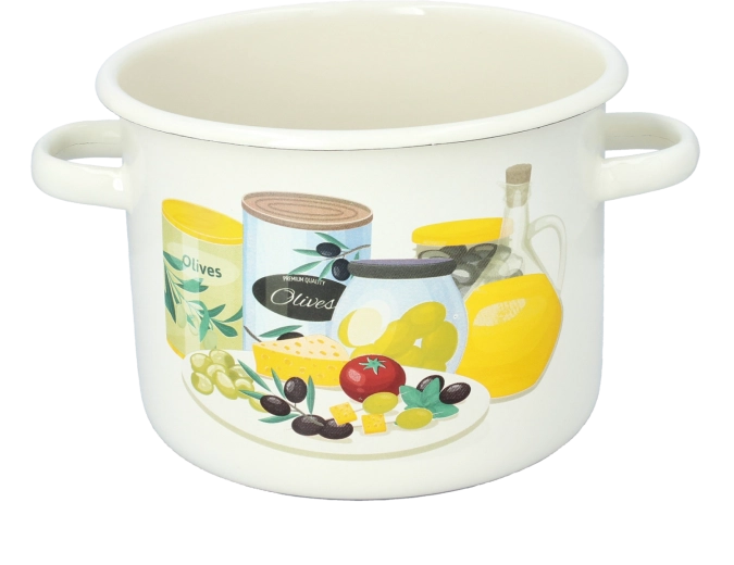 Ontdek een betrouwbare geglazuurde pan die een klassieke uitstraling combineert met praktische eigenschappen voor dagelijks koken. De crèmekleurige uitvoering met olijvenmotief past mooi in zowel moderne als landelijke keukens en biedt voldoende ruimte voor soepen, sauzen en stoofgerechten.