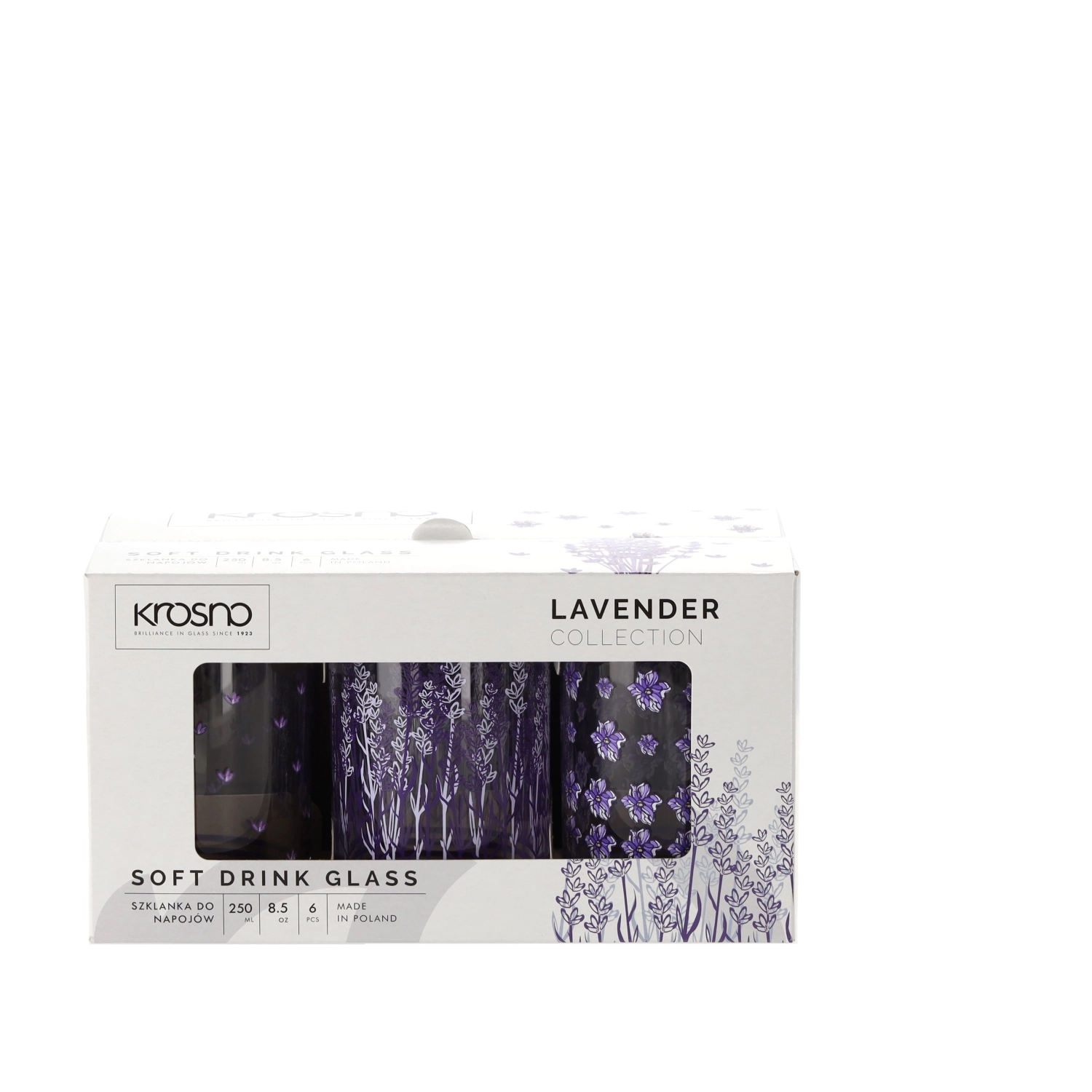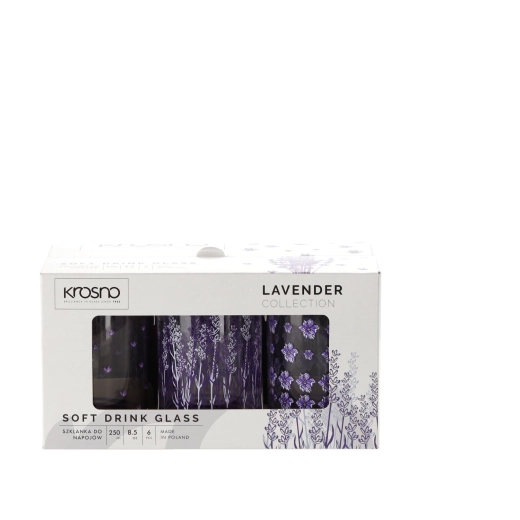 De Krosno Lavender glazen set valt op door de combinatie van een klassieke vorm en een subtiele paarse decoratie. Transparant glas met hoge glans accentueert het uiterlijk van je drank, of je nu koffie, thee, water of limonade serveert. De robuuste bodem en de prettige grip zorgen elke dag voor comfortabel en veilig gebruik.