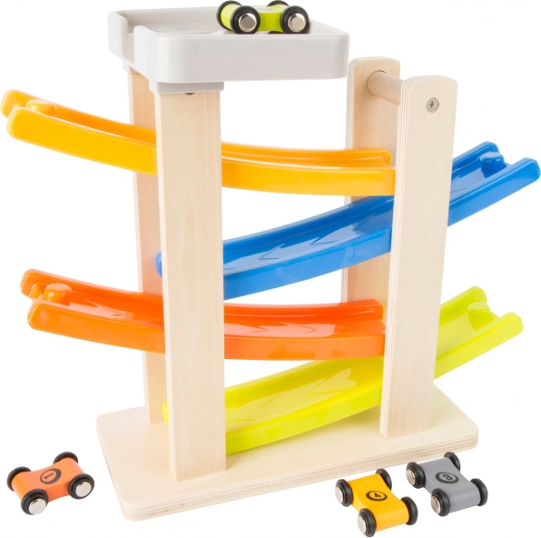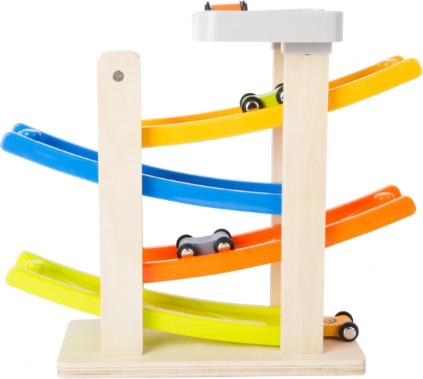 Deze fascinerende klip klap baan is gemaakt van een mix van hout en plastic, wat zorgt voor een lange levensduur en probleemloos gebruik. Met de vier kleurrijke hellingen kunnen kinderen kijken hoe de autootjes naar beneden racen met geweldige sprongen en draaien. Ideaal voor kinderen vanaf 18 maanden die graag spelen en hun motorische vaardigheden ontwikkelen.