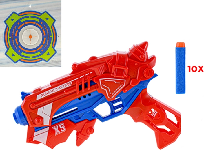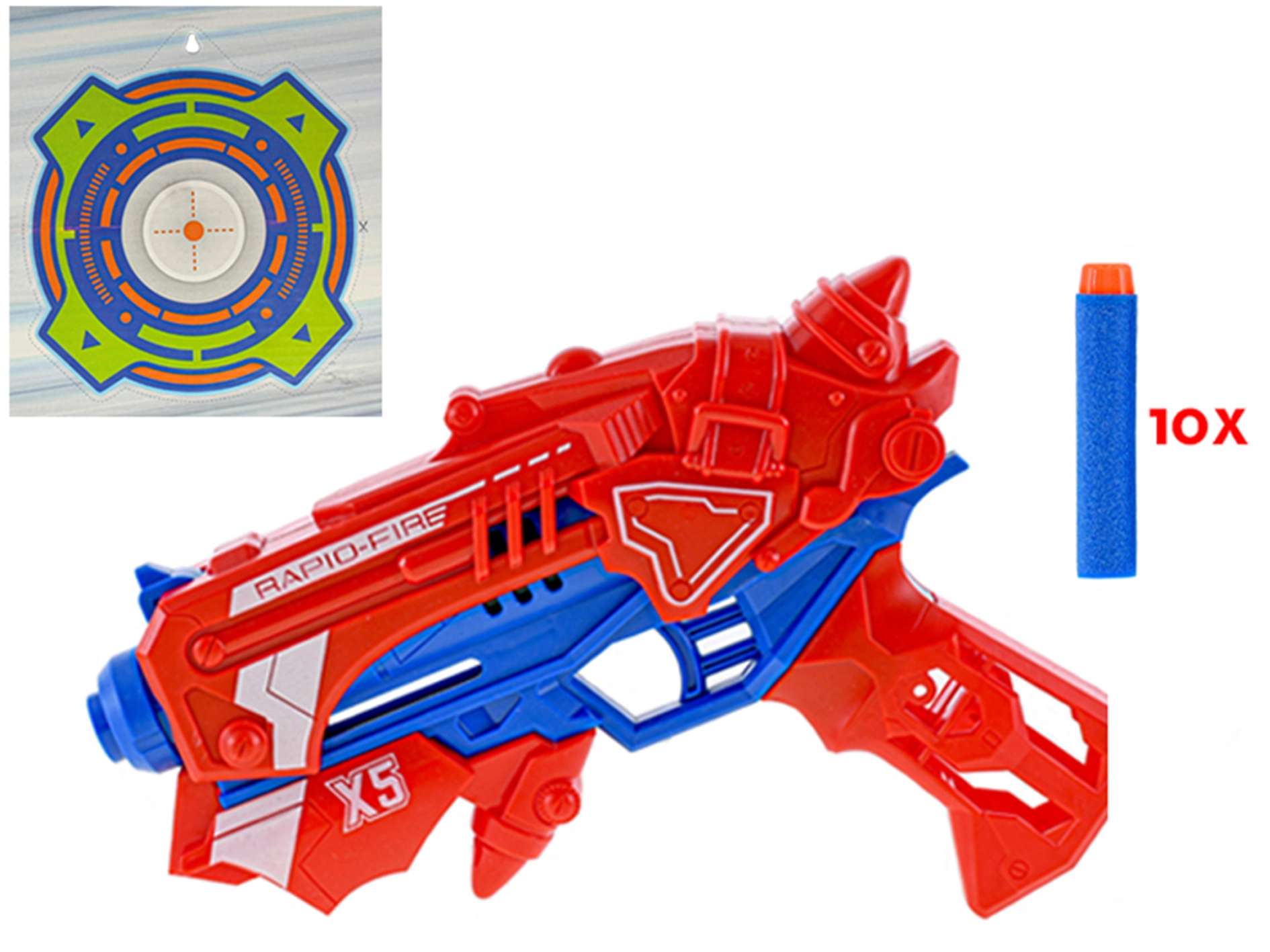 Geniet van actievolle pret met een speelgoedpistool voor schuimkogels van 23 cm, ideaal voor kinderen vanaf 6 jaar. Inclusief schietschijf en 10 zachte projectielen voor veilig oefenen van precisie. Eenvoudig en veilig te bedienen dankzij het trekmechanisme, duurzaam kunststof voor een lange levensduur en plezier binnen en buiten zonder zorgen.