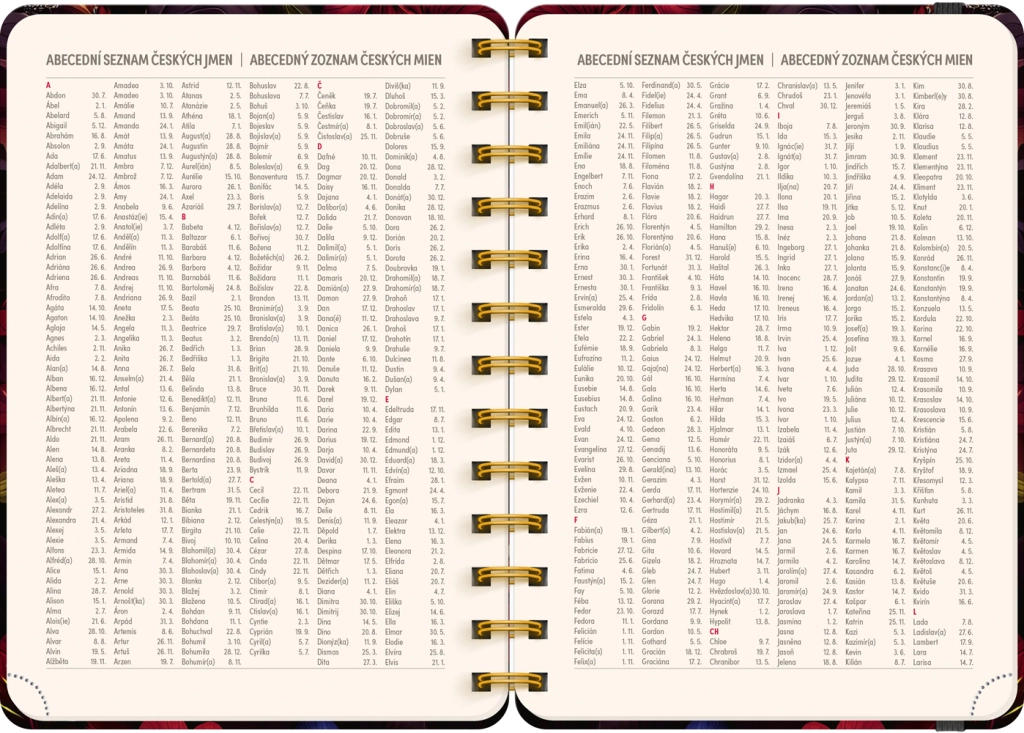 Schaf een stijlvolle planner aan – de 18‑maanden agenda Petito in een design met rode bloemen. Dankzij het overzichtelijke Tsjechisch‑Slowaakse weekoverzicht met namen en naamdagen hebt u altijd zicht op belangrijke data. De spiraalbinding maakt het gemakkelijk om plat te openen en soepel te schrijven.