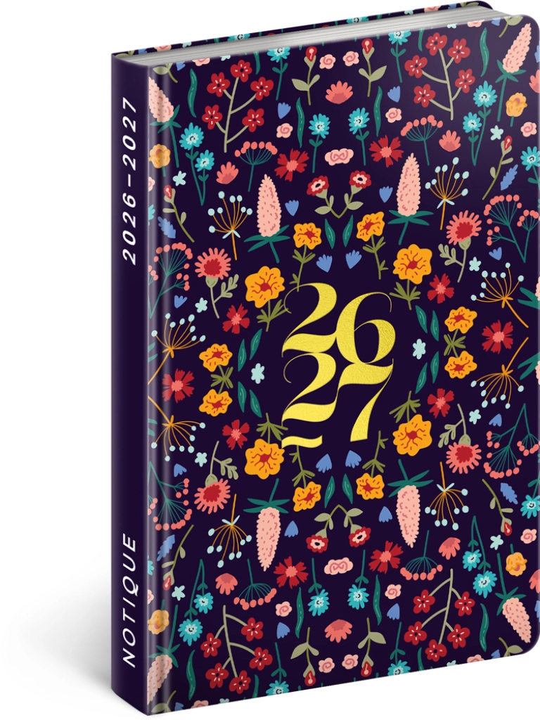 De elegante pocketagenda NOTIQUE Petito Flora voor de periode juli 2026 – december 2027 is ideaal voor dagelijkse planning. Biedt een overzicht van 18 maanden, een Tsjechisch‑Slowaaks wekelijks kolomkalendarium met namen en feestdagen en een compact formaat van 11 × 16 cm voor in handtas of rugzak.