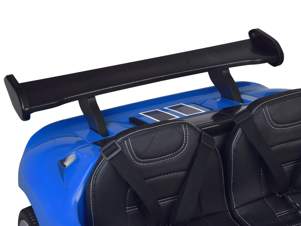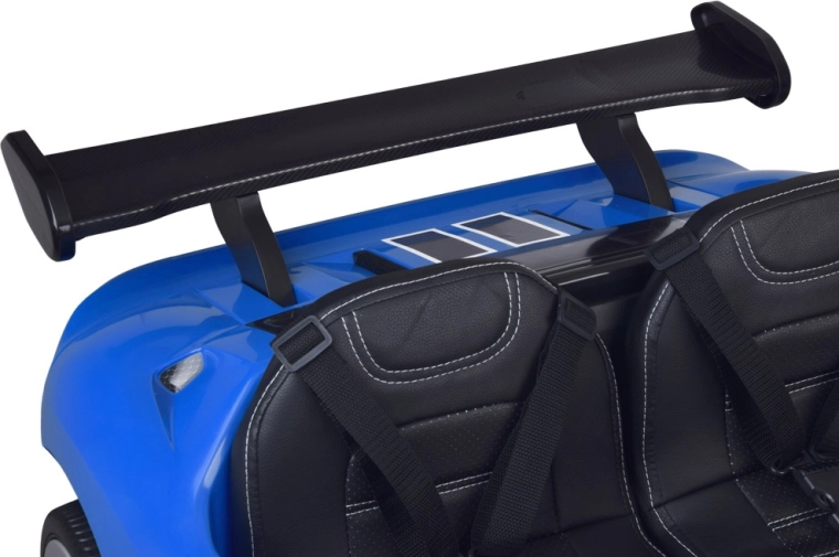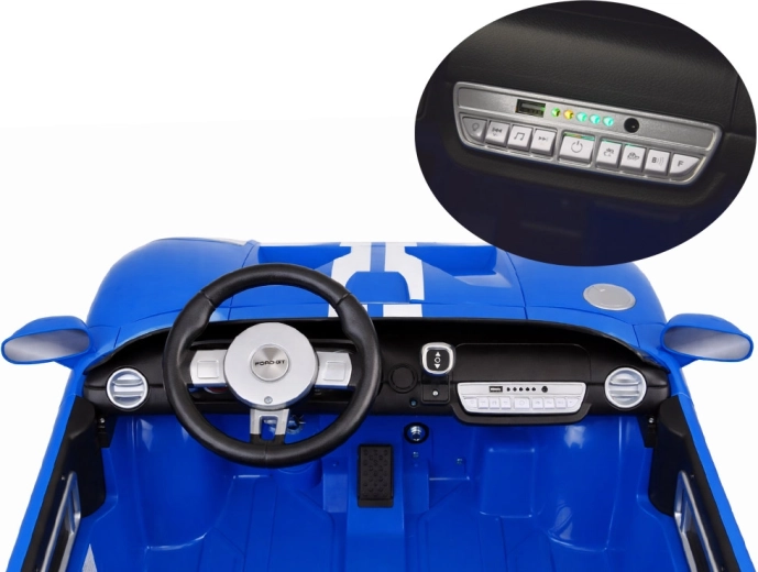 Stijlvolle elektrische kinderauto FORD GT met 24 V voeding, 4x4 aandrijving en tweepersoons zitbank voor een realistische rijervaring. Voorzien van te openen deuren, stille EVA-wielen, achtervering, soepele Soft Start, LED-koplampen en uitgebreide multimedia (Bluetooth, USB/MP3, FM-radio). Ouders zullen de afstandsbediening met nood-STOP waarderen en de keuze tussen handmatige en afstandsbediende modus.
