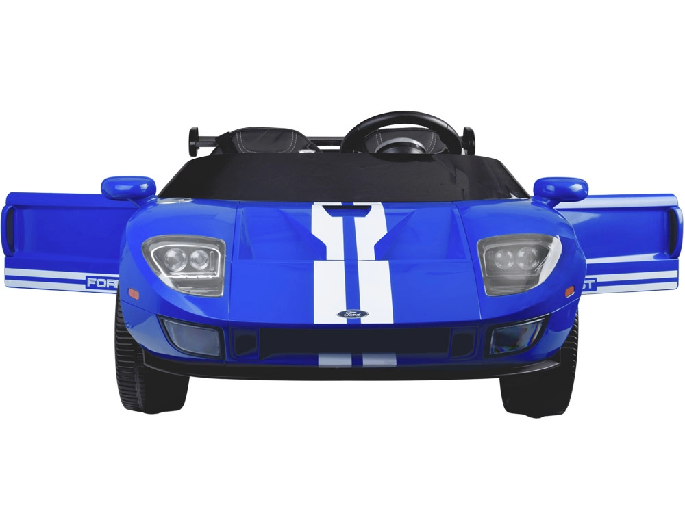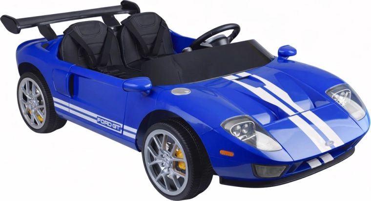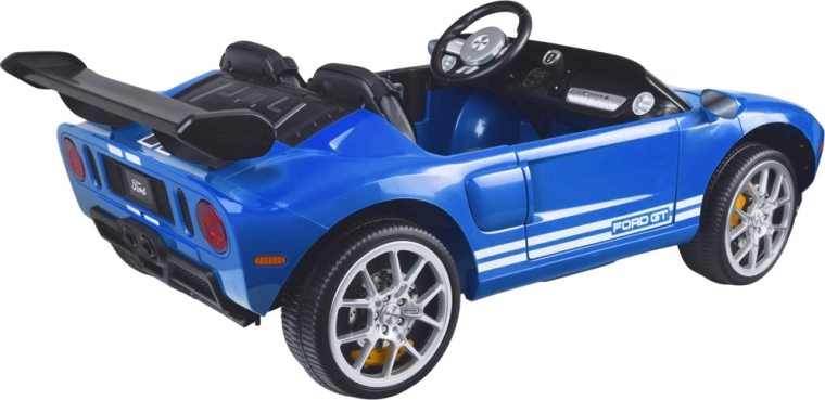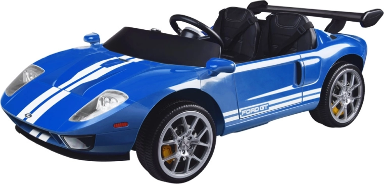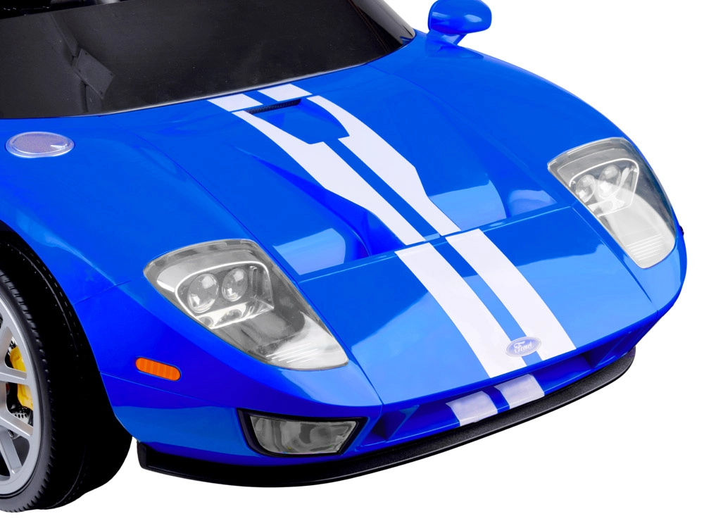 De sportieve elektrische auto FORD GT in gelicenseerde stijl van de legendarische supersportwagen verrast met gedetailleerde afwerking van de carrosserie, racestrepen en realistische accenten. Twee afzonderlijke stoelen met veiligheidsgordels garanderen comfortabel rijden voor broers, zussen of vriendjes, terwijl EVA-schuimwielen en achterste schokdempers het comfort op oneffenheden verhogen.