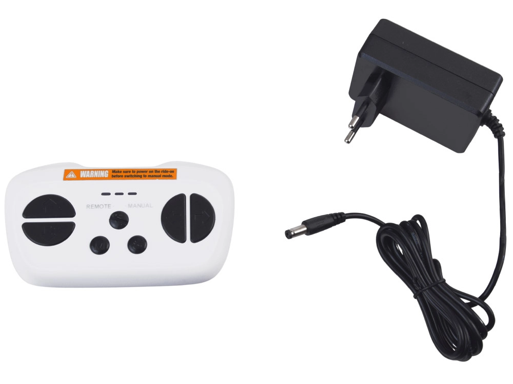 Het moderne dashboard met batterijstatusindicator, Start/Stop motorstartgeluid en multimediacentrum (Bluetooth, USB/MP3, FM, voorgeprogrammeerde melodieën, volumeregeling) zorgt voor plezier bij elke rit. Dankzij de afstandsbediening hebben ouders volledige controle over richting, snelheid en direct stoppen (knop STOP).