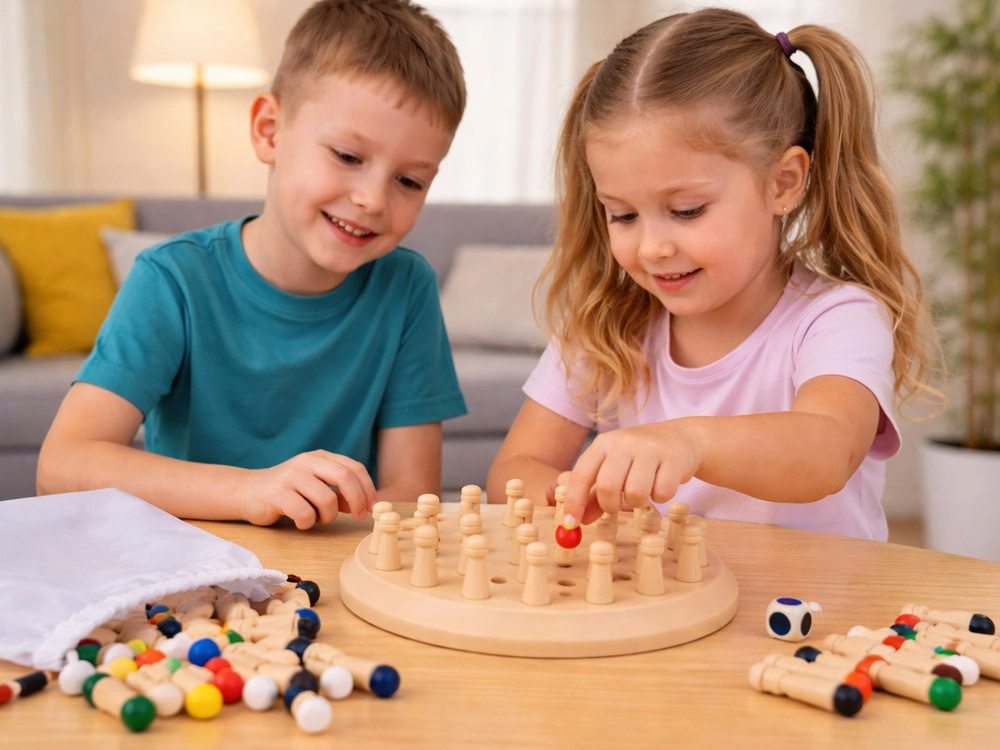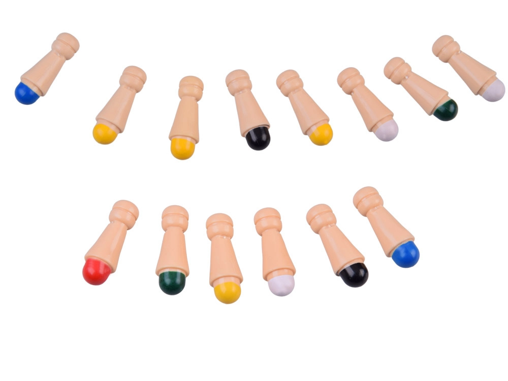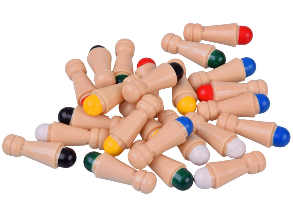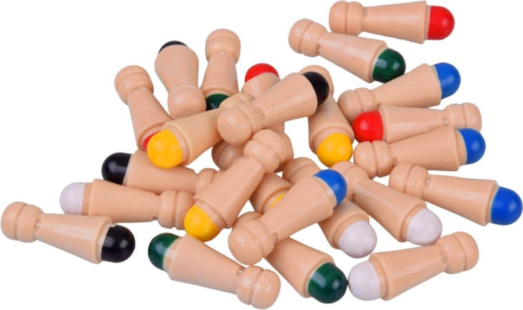 De regels zijn eenvoudig te variëren: win als eerste met 4 pinnetjes van dezelfde kleur, of verzamel 6 verschillende kleuren, of eindig met het grootste aantal pinnetjes aan het einde van het spel. Natuurlijk hout, een gladde afwerking en een praktisch stoffen zakje voor het opbergen maken dit spel tot een duurzame partner voor dagelijks speelplezier.