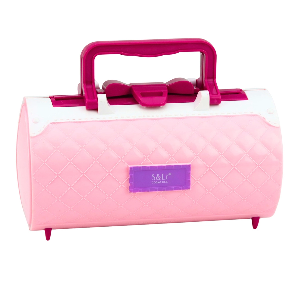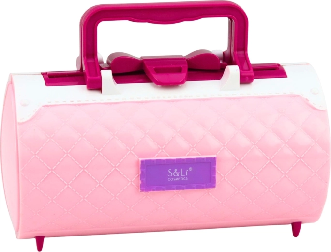 Stijlvolle roze koffer met handvat en slot voor comfortabel meenemen en veilige opslag van de volledige make-up set.