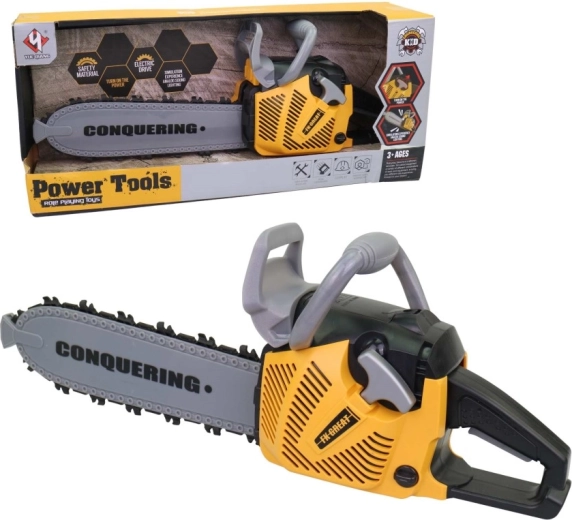 Realistische kinder-kettingzaag voor kleine klusjesmannen met licht- en geluidseffecten, eenvoudig te bedienen en een veilig plastic ontwerp. Ideaal voor jongens vanaf 3 jaar die graag het werk van volwassenen nadoen. Dankzij de lengte van 42 cm oogt hij levensecht en zorgt hij voor veel speelplezier bij rollenspellen rondom bouwen en de werkplaats.