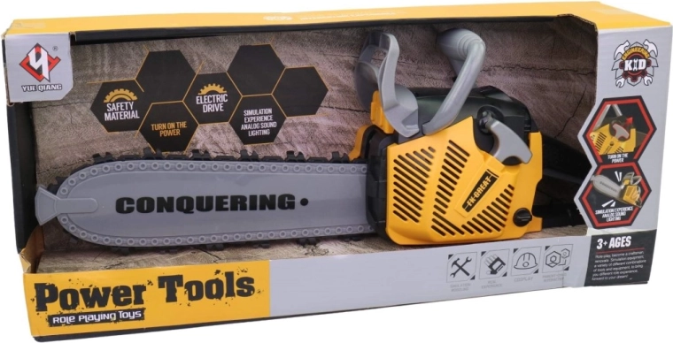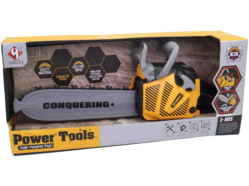 Deze kinder-kettingzaag op batterijen is een geweldige keuze voor kleine doe-het-zelvers die de wereld van gereedschap op een veilige manier willen ontdekken. De realistische licht- en geluidseffecten stimuleren de verbeelding en geven het spel extra authenticiteit, terwijl het duurzame plastic materiaal voor veilig gebruik zorgt.