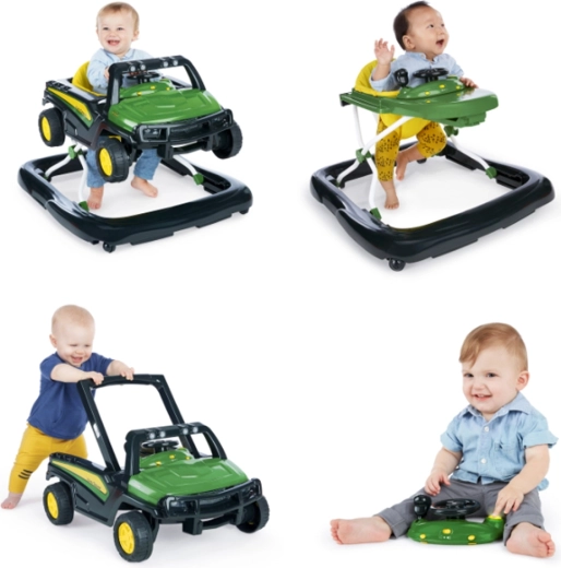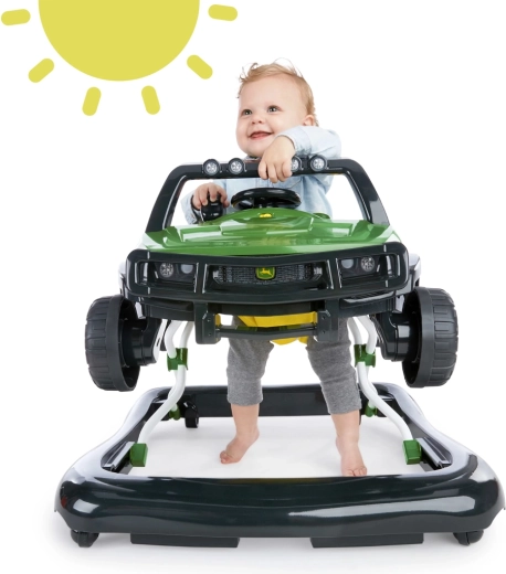 De 4-in-1 John Deere Gator loopstoel van Bright Starts groeit mee met je kind: van zitten met ondersteuning via het klassieke loopstoeltje tot push-along duwen en een los speelpaneel voor spel op de vloer. Het realistische uiterlijk van het utility-voertuig, het stuur, de versnellingshendel, lichten en geluiden van de JOHN DEERE Gator prikkelen de verbeelding en ontwikkelen zowel grove als fijne motoriek.