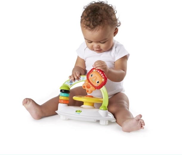 Het leuke stuurtje en de activiteiten stimuleren de zintuigen en de motoriek. Na het verwijderen dient het als een zelfstandig speelcentrum op de vloer.