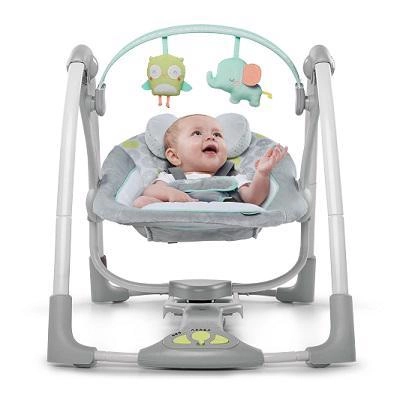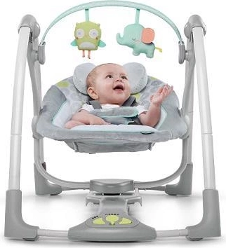 Kalmeer je baby overal en altijd met het compacte wipstoeltje Ingenuity Hoots & Hugs. Het biedt 5 schommelsnelheden dankzij de TrueSpeed-technologie, 8 melodieën en 3 natuurgeluiden, stille werking met WhisperQuiet en een timer van 30/45/60 minuten. Dankzij Hybridrive gaan batterijen tot 3× langer mee. Voor comfort zorgen een zachte, uitneembare hoofdkussen, een 5-punts gordel en een afneembare speelboog met 2 pluche speeltjes. Het lichte ontwerp vouwt eenvoudig op tot een ruimtebesparende vorm met SlimFold.