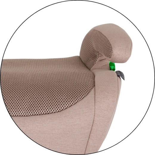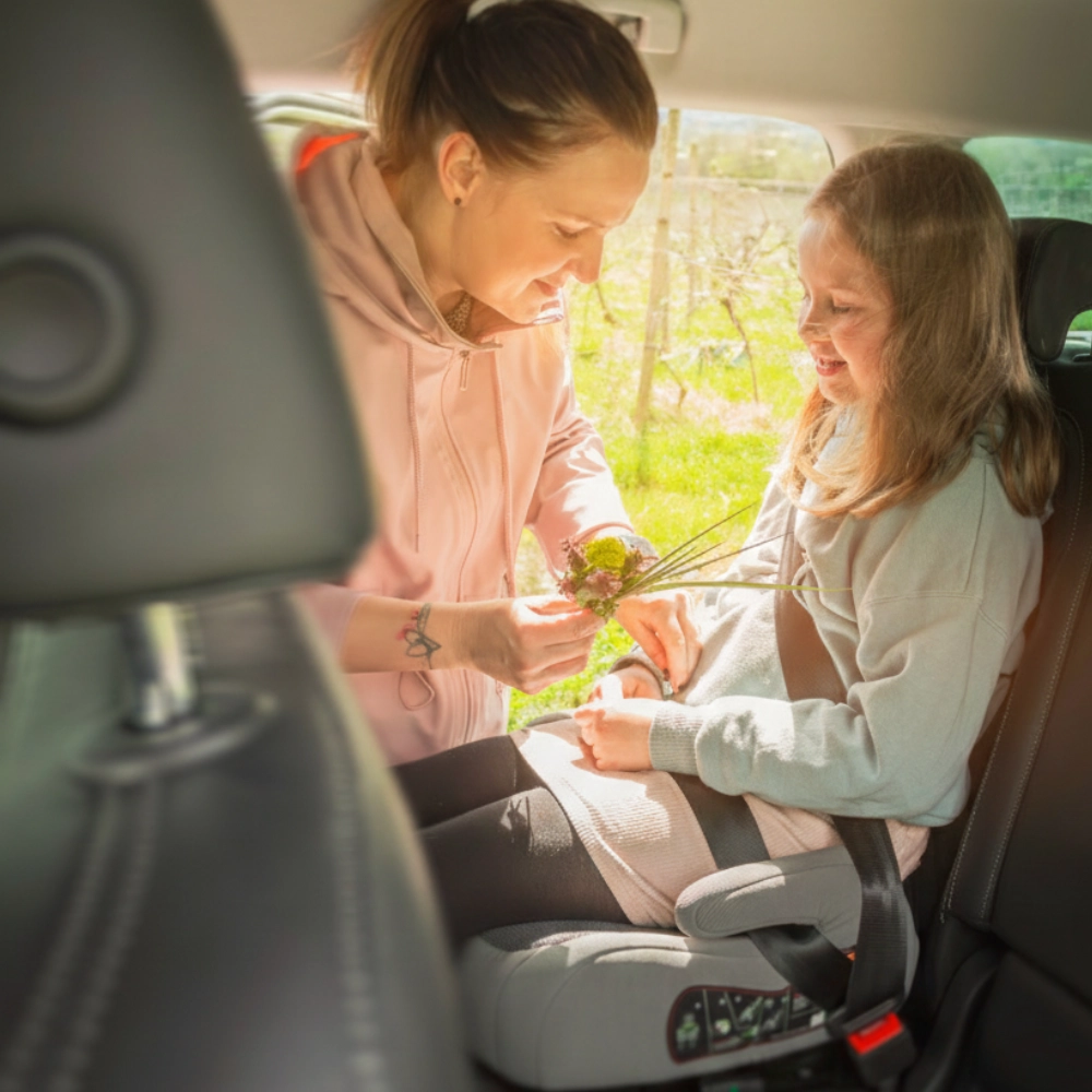 Metalen ISOFIX-connectoren zorgen voor een stevige verankering van de zitverhoger in het voertuig, beperken ongewenste bewegingen en vereenvoudigen de dagelijkse installatie.