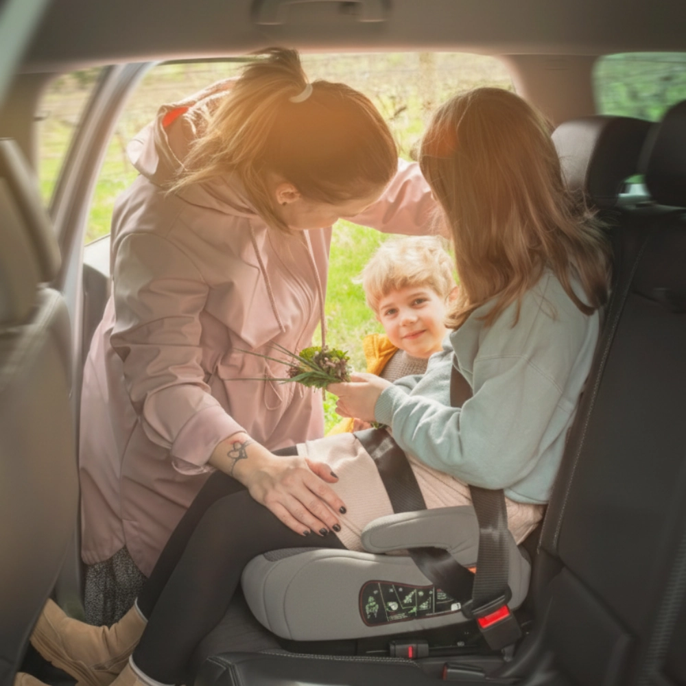- 3-punts autogordel – veilige bevestiging van het kind.