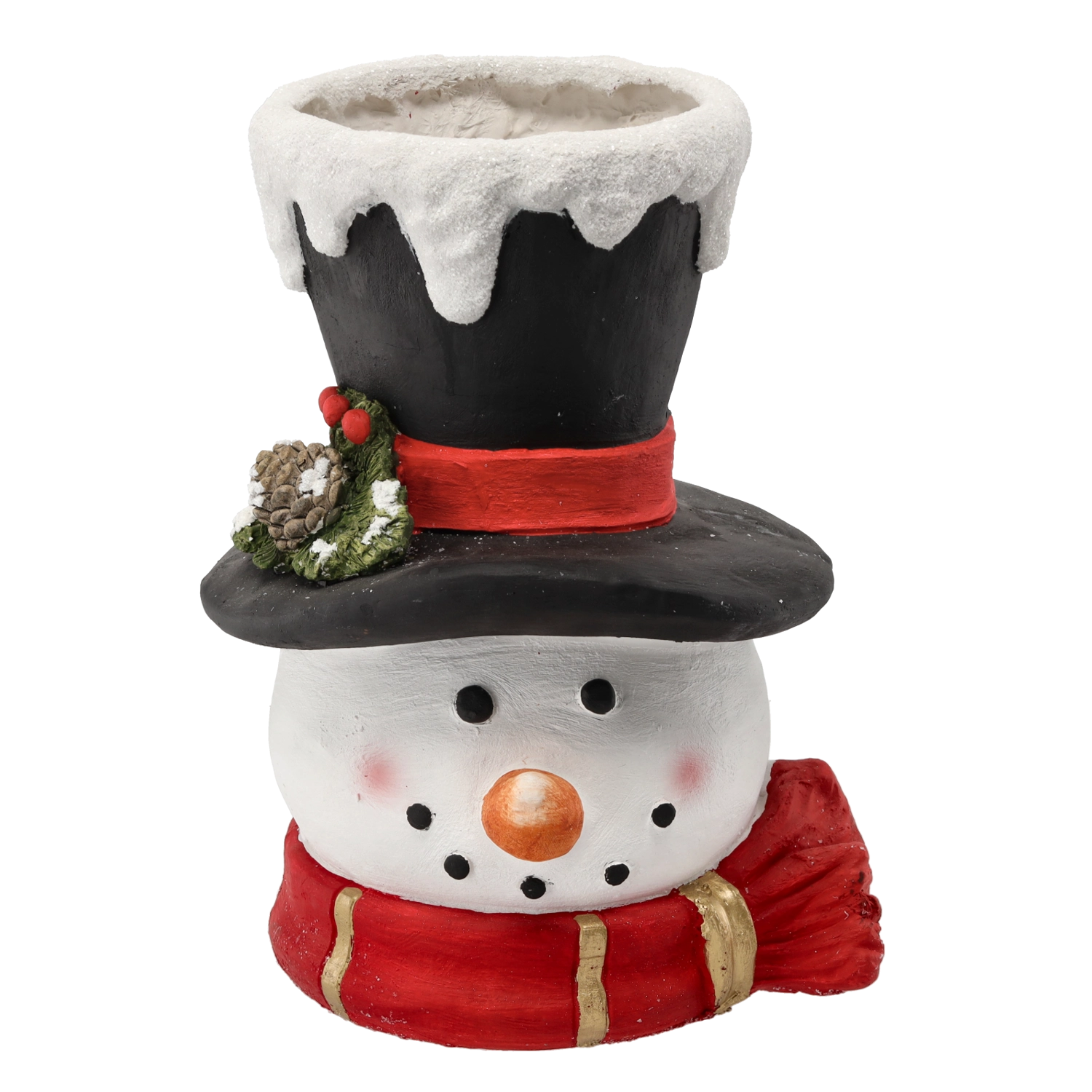 Deze elegante kerstvaas in de vorm van een sneeuwmanhoofd brengt een vrolijke, feestelijke sfeer in je interieur. Zorgvuldig uitgewerkte details – ogen, neus, mond en zacht roze wangen – benadrukken haar charme. De opening aan de bovenkant van de hoed is ideaal voor verse bloemen, takjes, droogboeketten of lichtsnoeren.