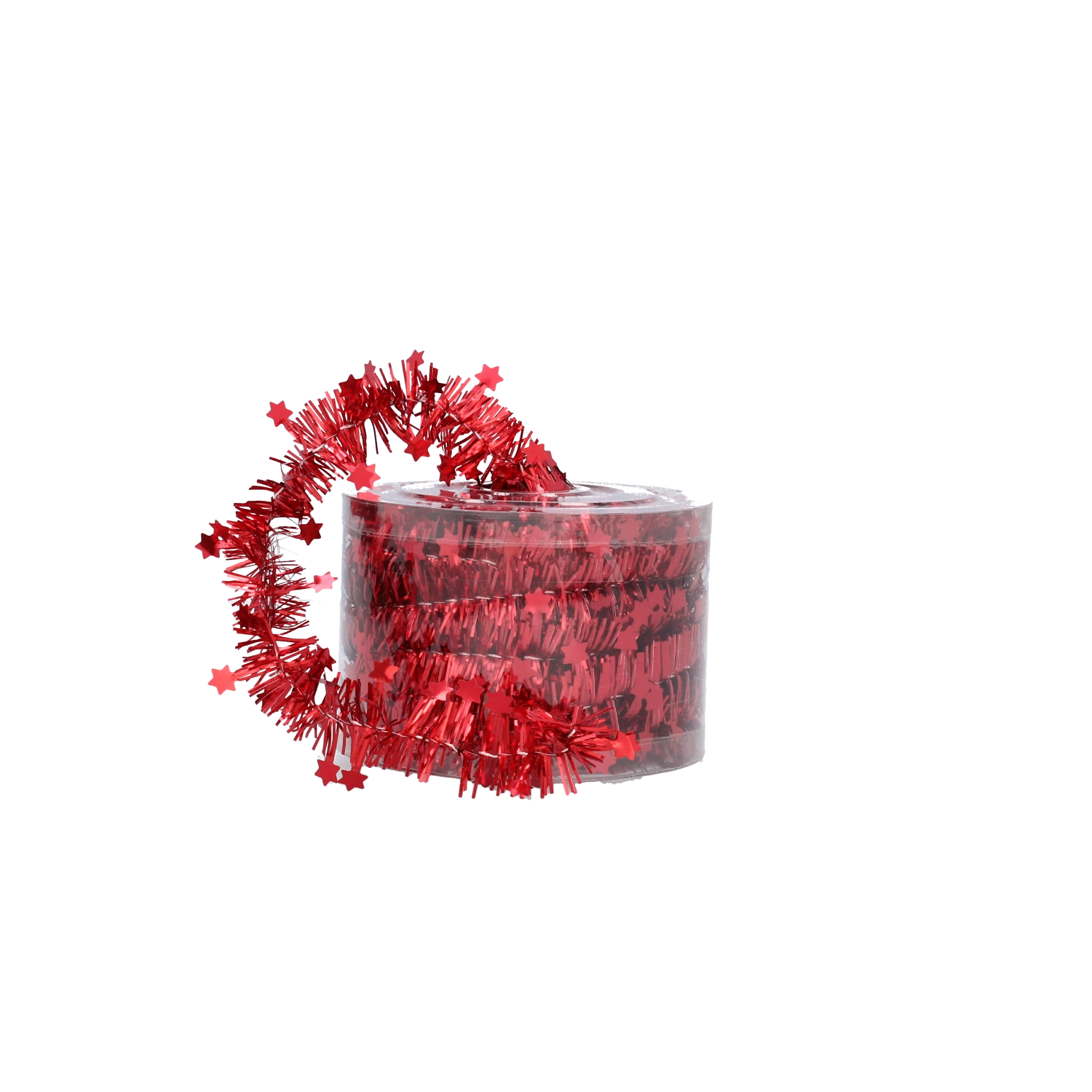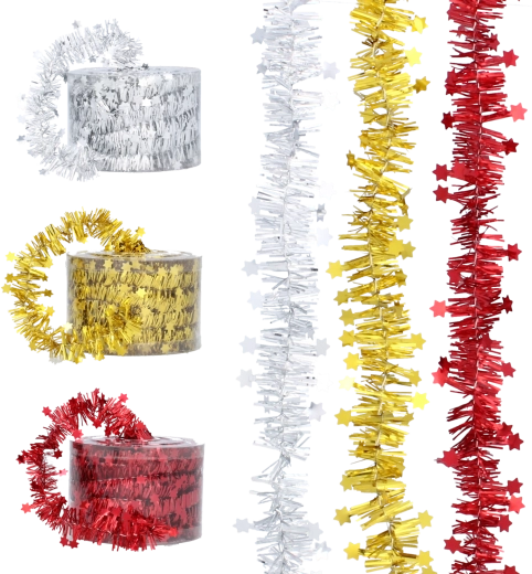 Het lichte en flexibele materiaal is eenvoudig te vormen, zakt niet uit en blijft goed zitten waar je het nodig hebt. Metallic franjes weerkaatsen prachtig het licht van lampjes en kaarsen, terwijl de sterretjes een speels en feestelijk accent geven. Kies uit rood voor een opvallend accent, goud voor een warme, luxueuze touch of zilver voor een moderne, ijzige glans.