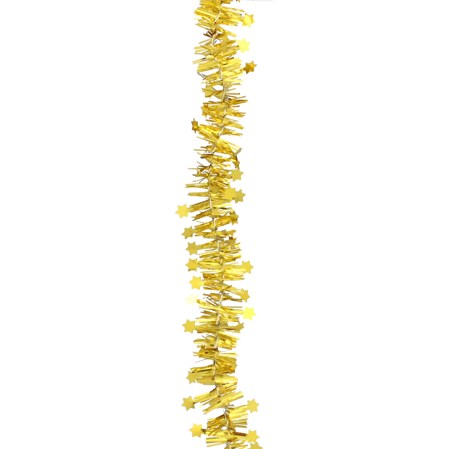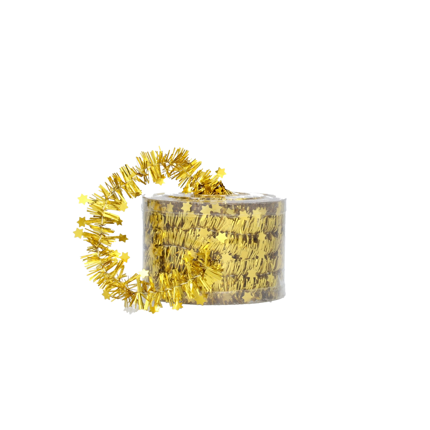 De gouden slinger met sterrenmotief geeft je decor een warme, luxueuze uitstraling en combineert prachtig met zowel natuurlijke als traditionele kleuren.