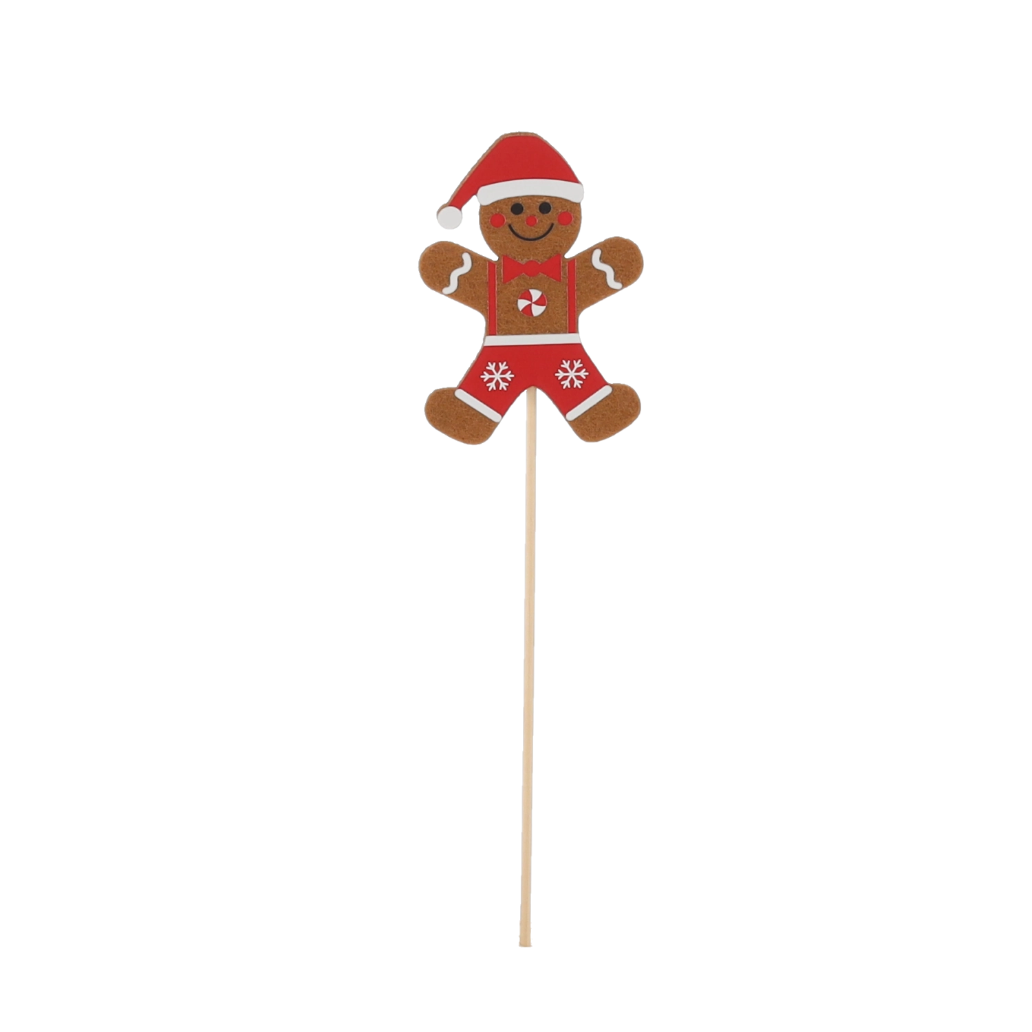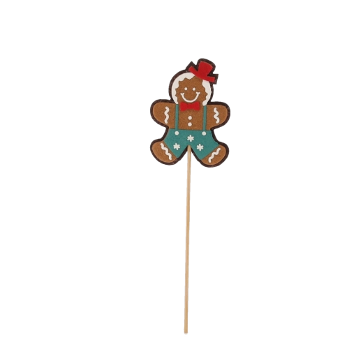 Deze kerstversiering in de vorm van een gingerbread man is ontworpen om traditionele peperkoekjes natuurgetrouw na te bootsen en geeft je interieur een warme en gezellige sfeer. Dankzij het praktische stokje prik je hem eenvoudig in een bloempot, krans of arrangement, of gebruik je hem als opvallend accent op de feesttafel.