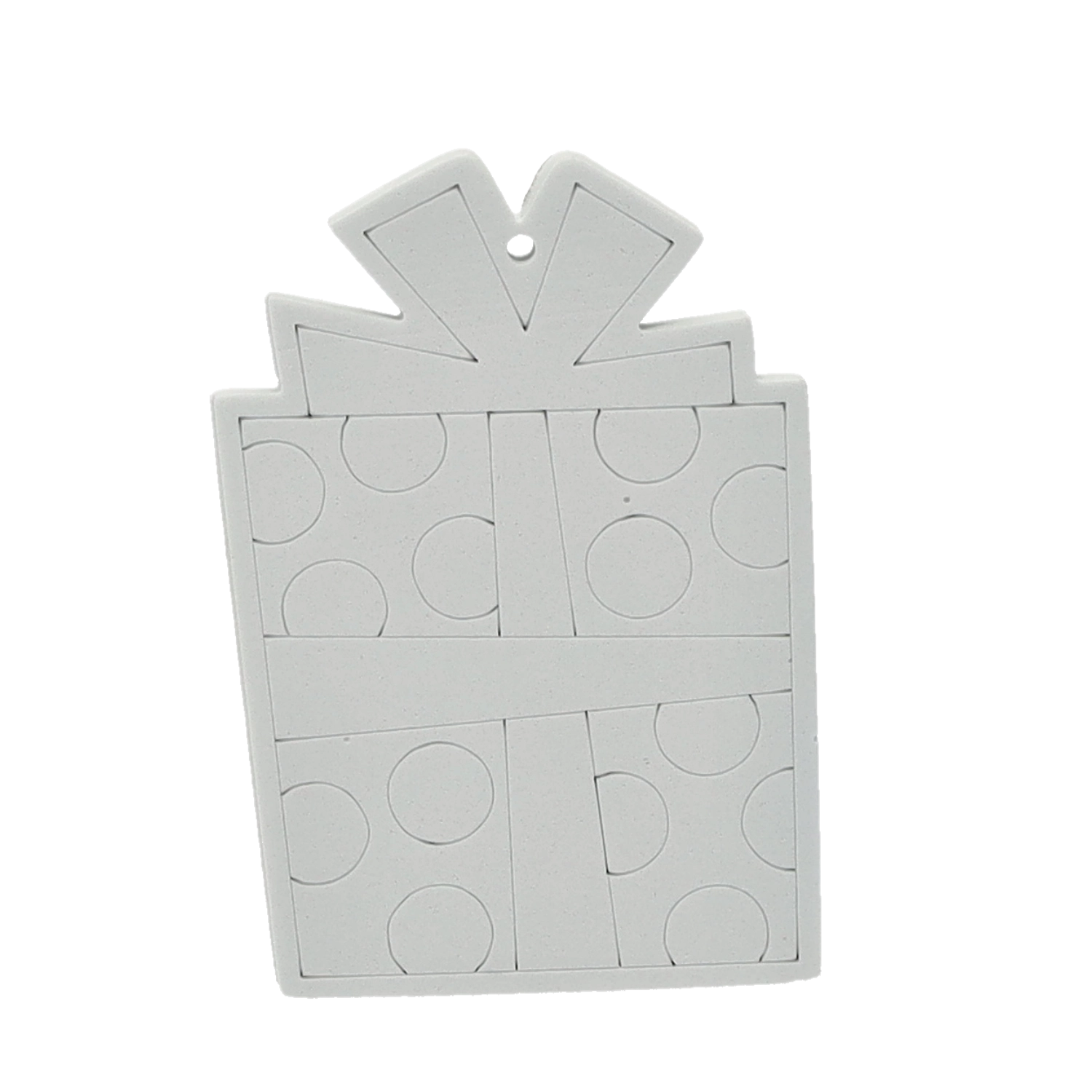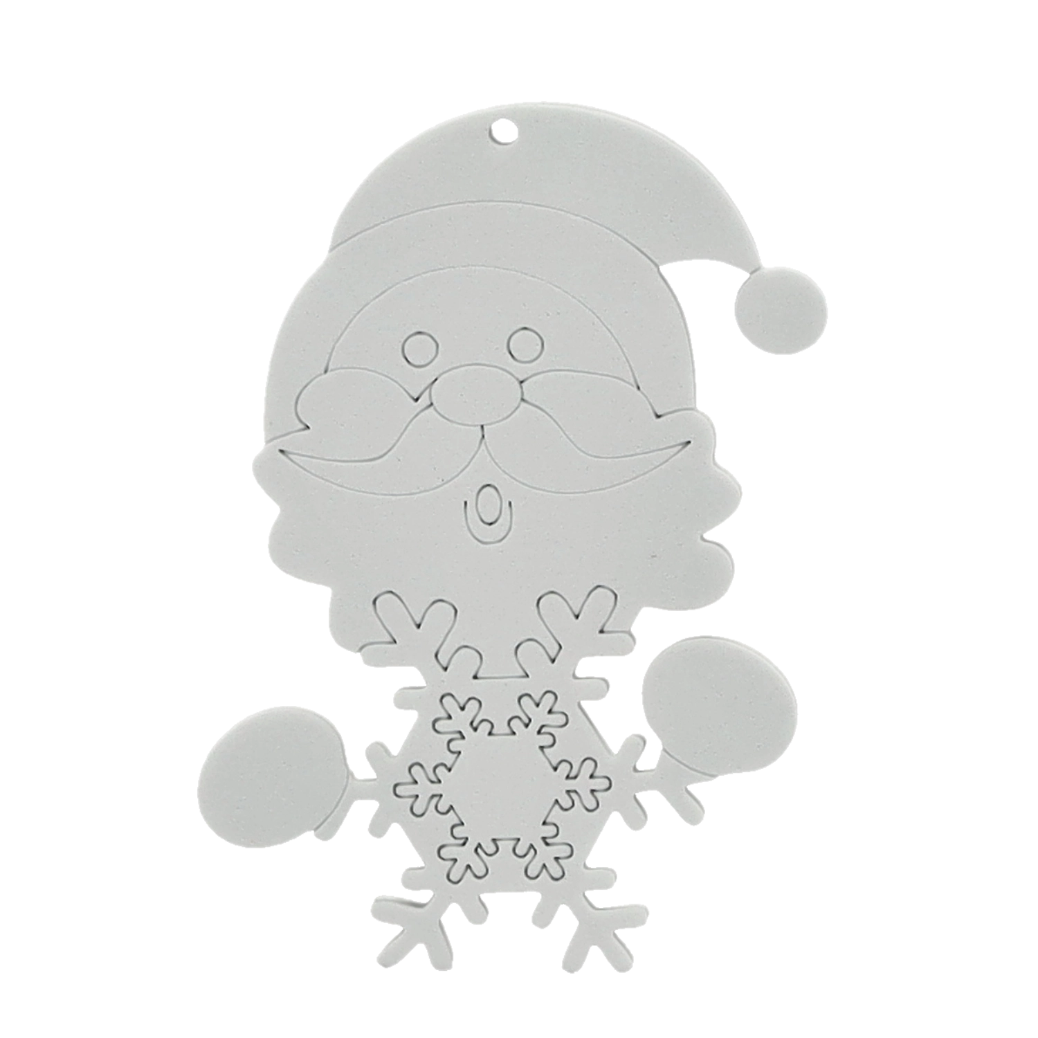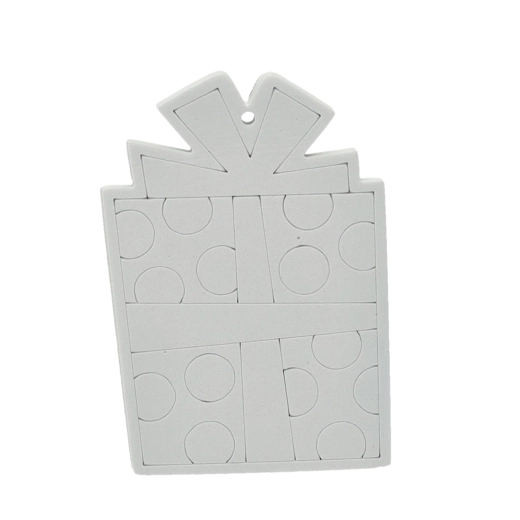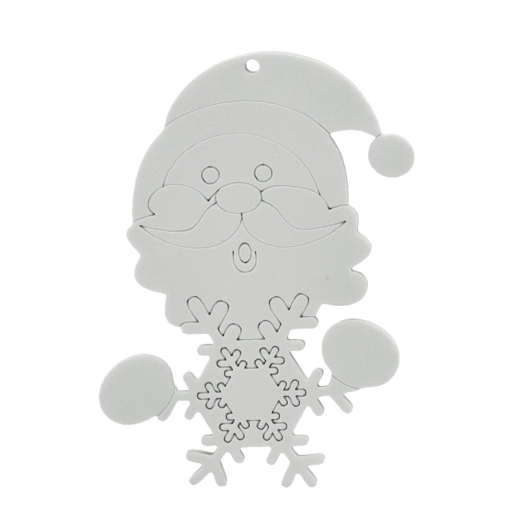 Sneeuwman, Kerstman, boom of sok – elk onderdeel heeft een gaatje voor een koordje, zodat je het eenvoudig in de boom of aan een cadeau kunt hangen.
