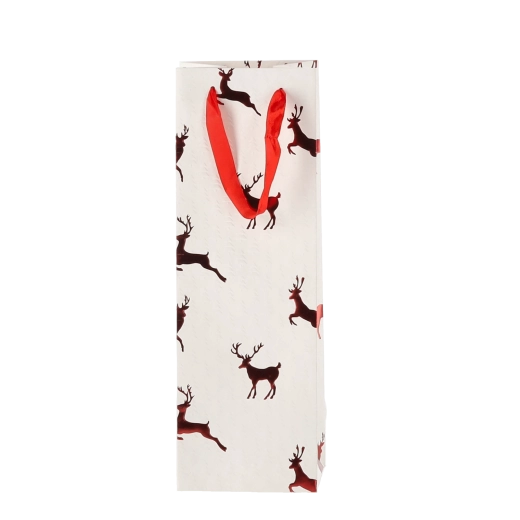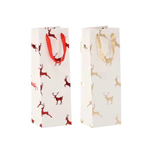 Deze kerstcadeautas voor wijn geeft je geschenken extra flair. Het hoogwaardige papier met een gramgewicht van 210 g/m² zorgt voor hoge stevigheid en duurzaamheid, terwijl de satijnen handgrepen het dragen comfortabel maken en het feestelijke ontwerp met rendiermotieven benadrukken.