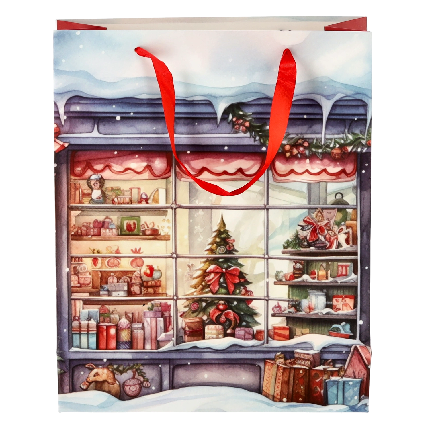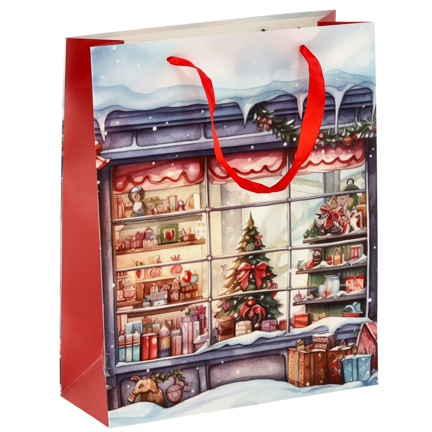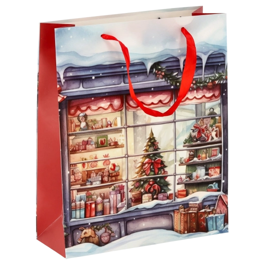 De afmetingen 26 × 32 × 10 cm maken het een uitstekende keuze voor boeken, grotere kalenders en kleinere cadeaupakketten. Stevige handgrepen zorgen voor comfortabel dragen en het universele feestelijke design past de hele winter, niet alleen met Kerstmis.