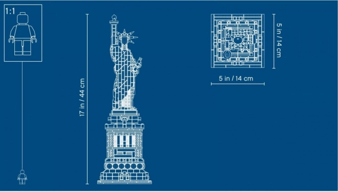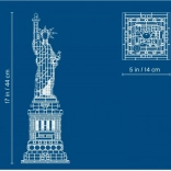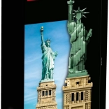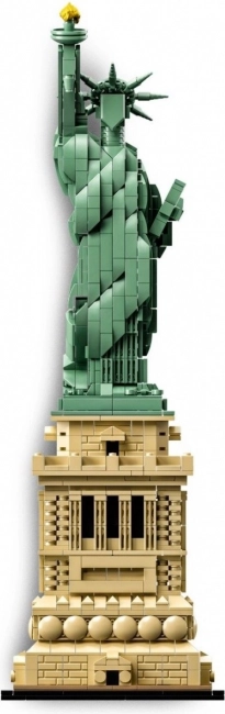 Eer de verbinding tussen architectuur en beeldhouwkunst met het monumentale model van het Vrijheidsbeeld uit de LEGO Architecture-serie. De replica biedt rijke details: een versierde sokkel met reliëfs, baksteenstructuur en colonnades, en het beeld zelf met vloeiende mantel, zevenpuntige kroon, tablet en gouden fakkel.